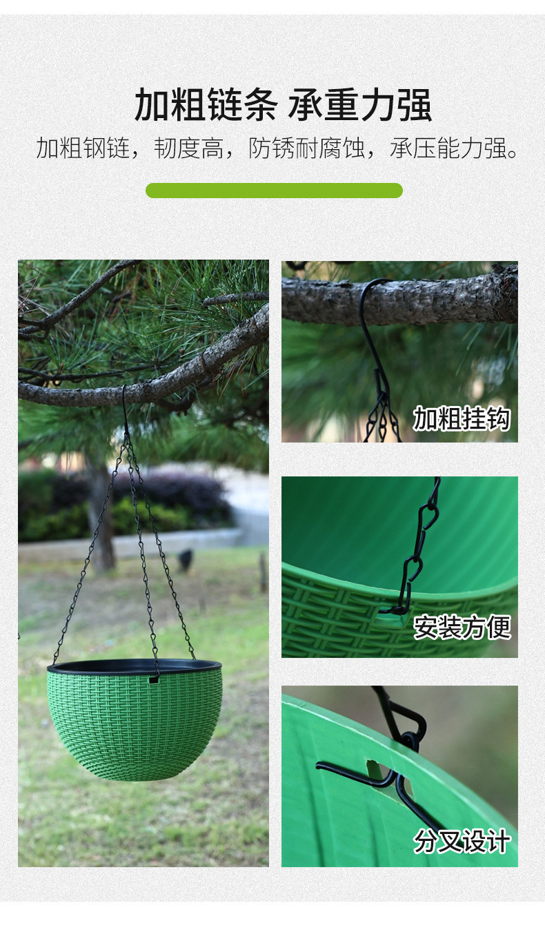 • 잔디 녹색 등나무 거미 식물 냄비 + 심기 바구니 + 철 사슬 + 물 플러그