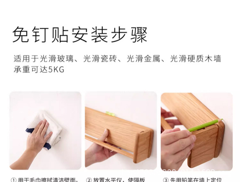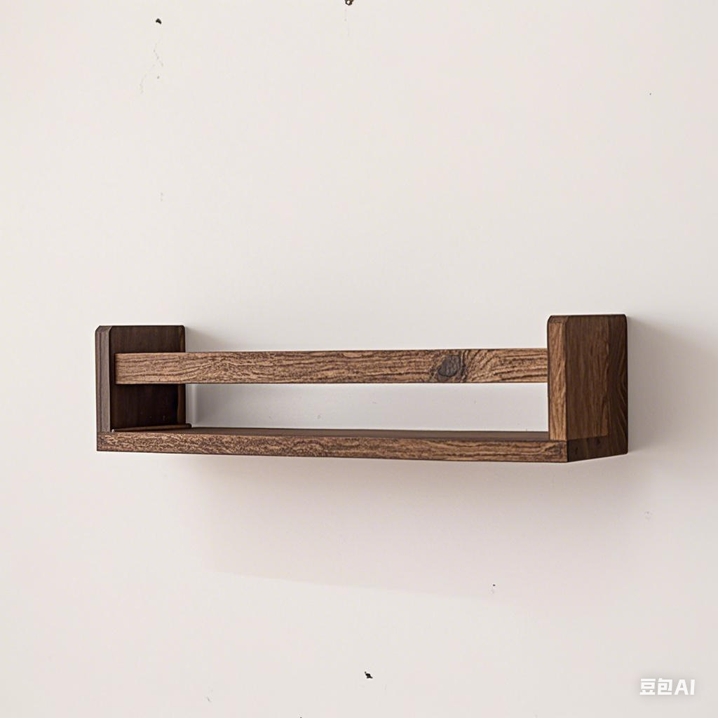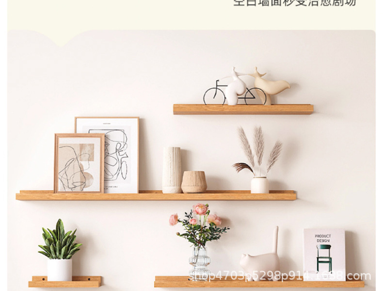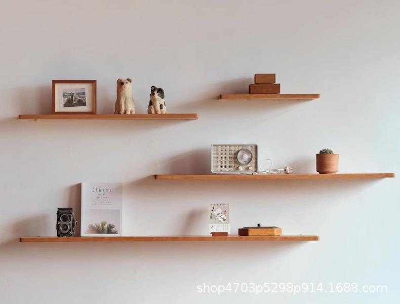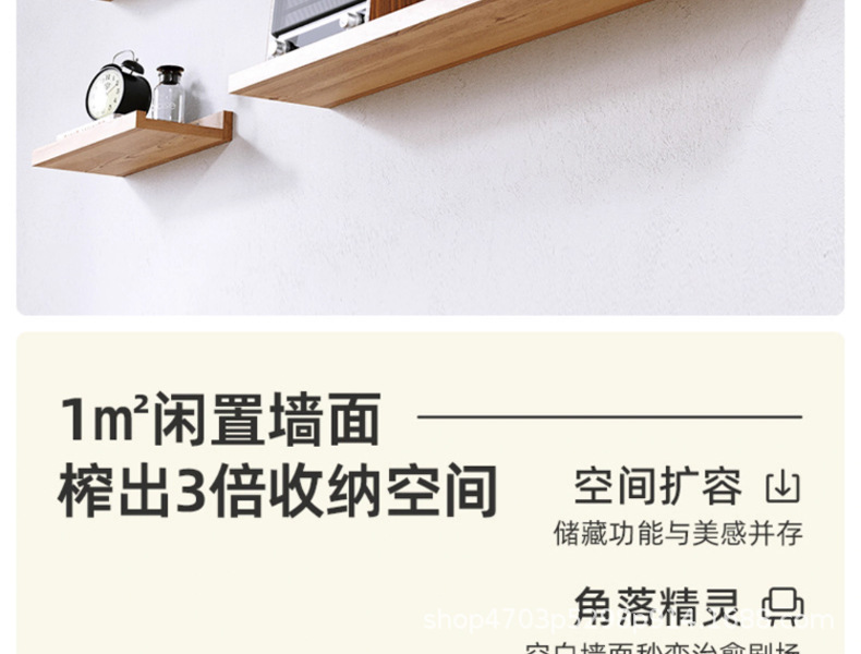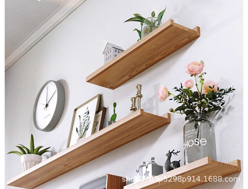 순수 원목 선반, 벽에 구멍을 뚫을 필요 없음, 벽걸이형 선반, 수납 브래킷, 철제 및 목재 브래킷 선반