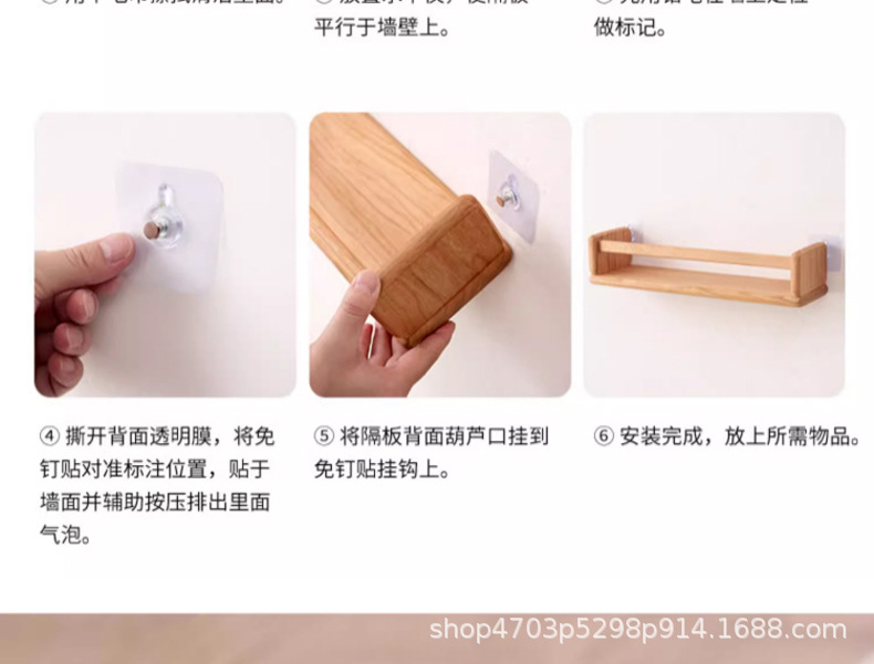 순수 원목 선반, 벽에 구멍을 뚫을 필요 없음, 벽걸이형 선반, 수납 브래킷, 철제 및 목재 브래킷 선반스토어 가기