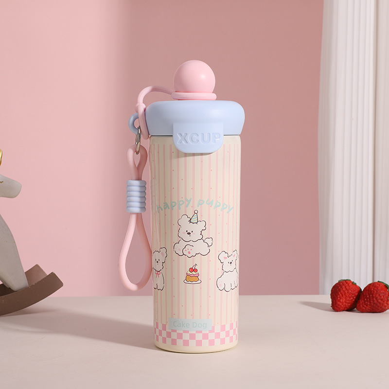 2025 새로운 316 더블 레이어 스테인레스 스틸 절연 컵 휴대용 로프 밀짚 컵 귀여운 동물 플로팅 볼 텀블러