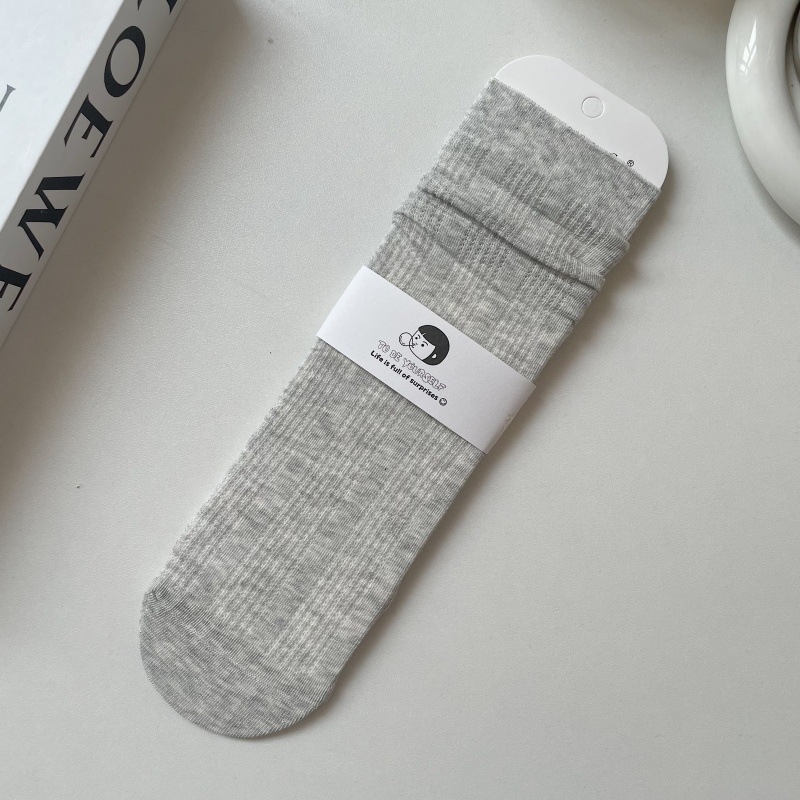 여름 양말 여성용 얇은 종아리 중간 양말 중공 메쉬 양말 miu 통기성 순수 여성 양말 회색 양말스토어 가기