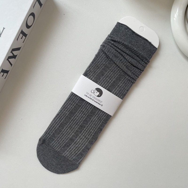 여름 양말 여성용 얇은 종아리 중간 양말 중공 메쉬 양말 miu 통기성 순수 여성 양말 회색 양말