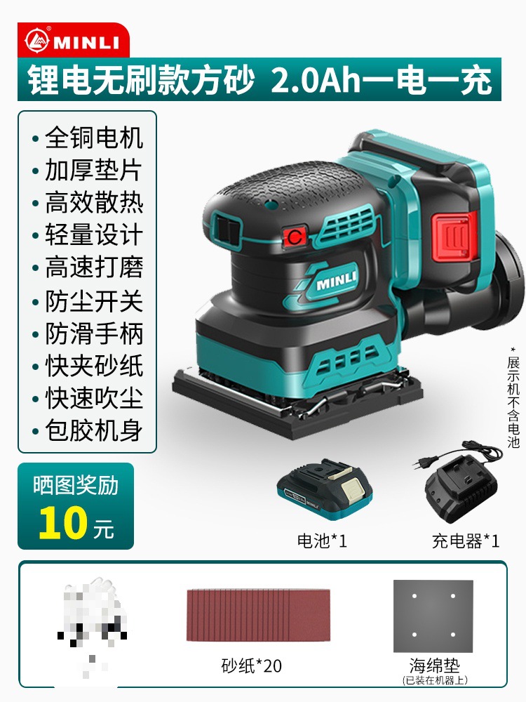 • [리튬 배터리 브러시리스 + 자체 진공 사각 모래] 배터리 1개, 충전 1개 + 사포 20개