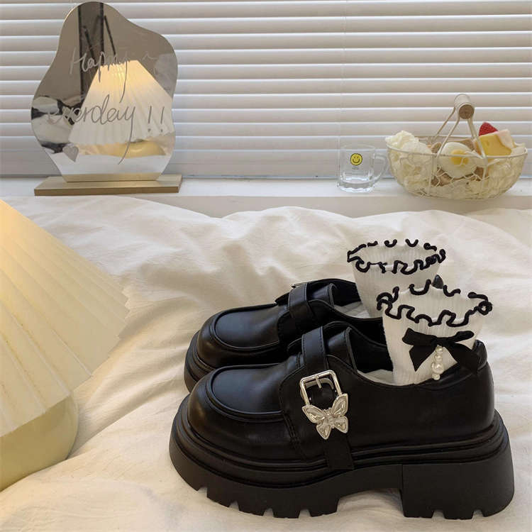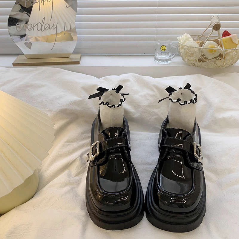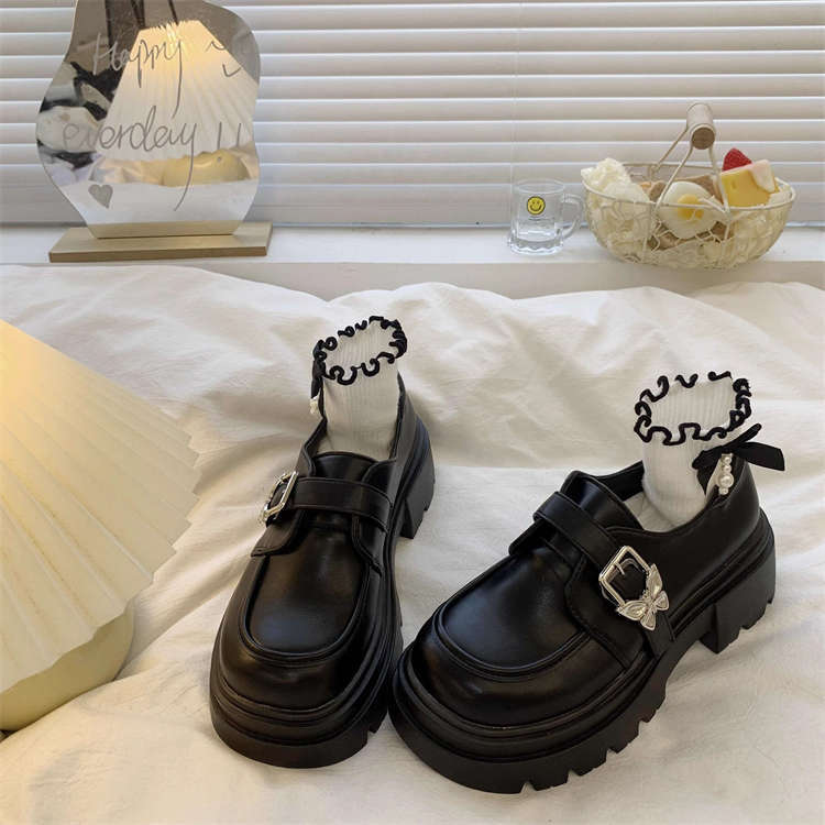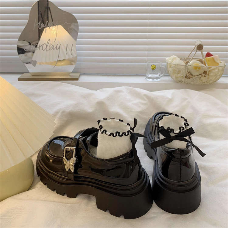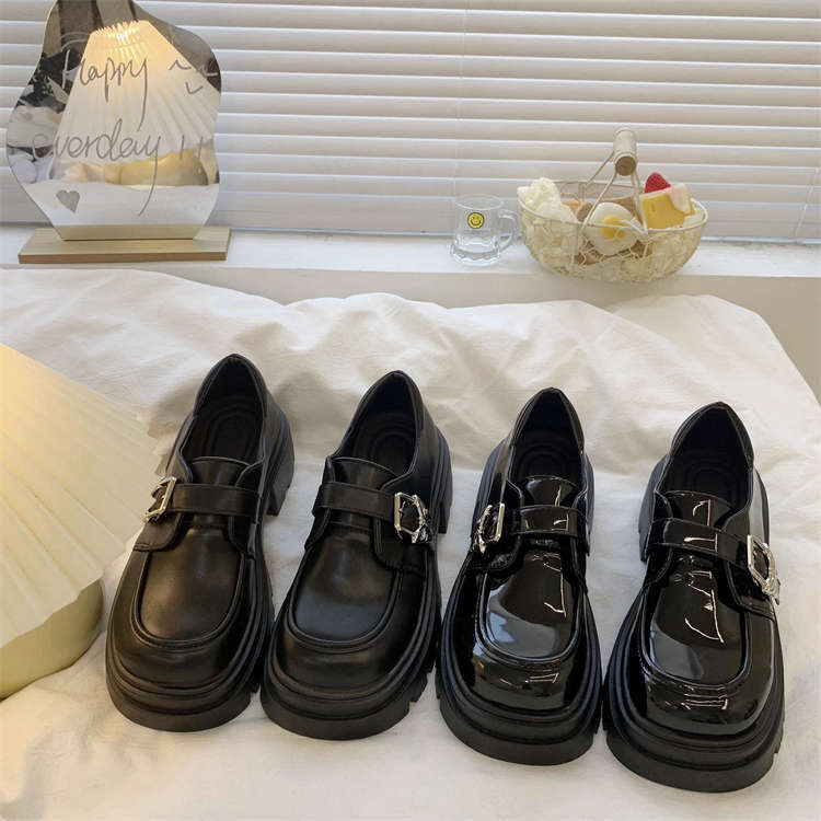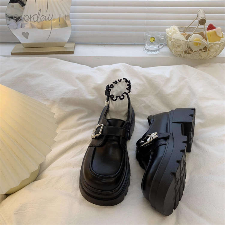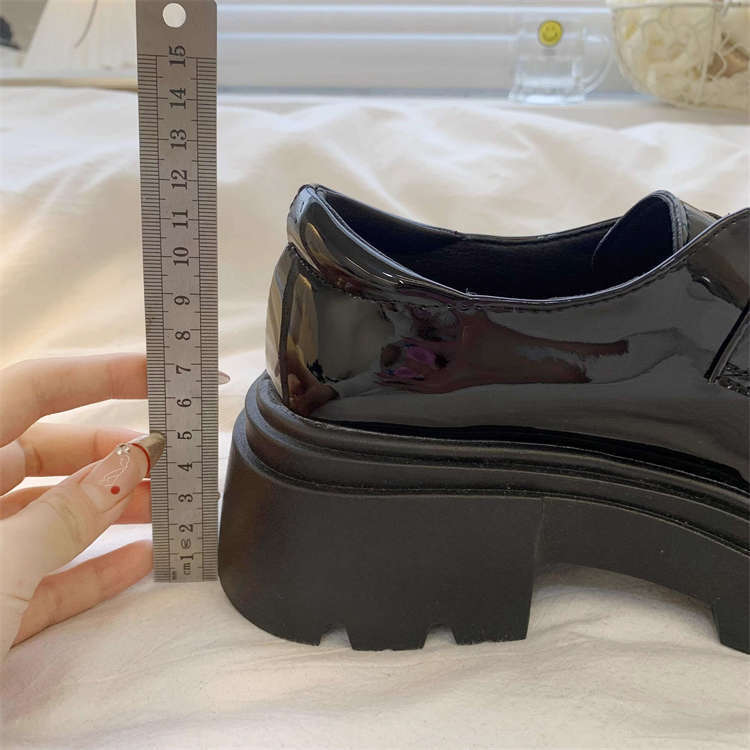 여성을위한 두꺼운 밑창 검은 색 작은 가죽 신발 2025 새로운 봄, 가을 영국 스타일 두꺼운 굽 높이 둥근 발가락 일본 jk 로퍼스토어 가기