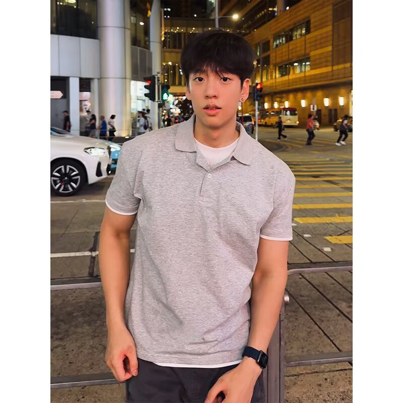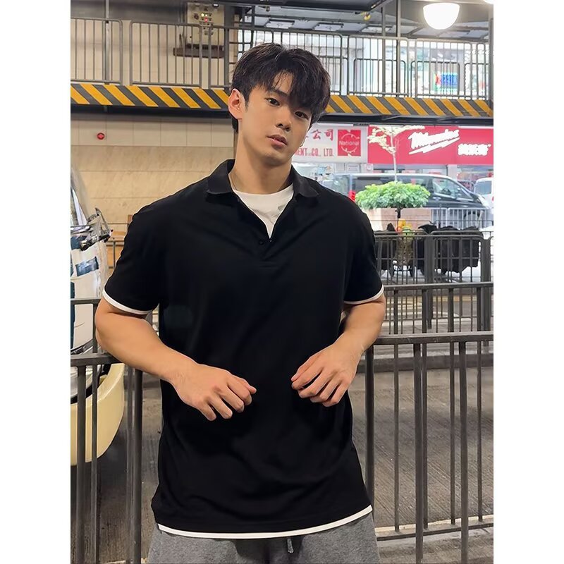 아메리칸 스타일 페이크 투피스 반팔 폴로 셔츠 남성 여름 어깨 패드 커프스 티셔츠 피트니스 텐션 웨어 탑