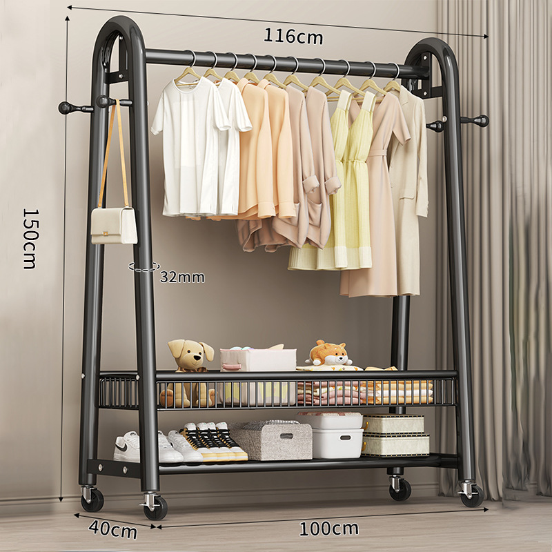 이동식 옷걸이, 더러운 옷 바구니, 옷걸이, 침실 바닥 스탠딩 가정용 옷 보관함, 수직 선반
