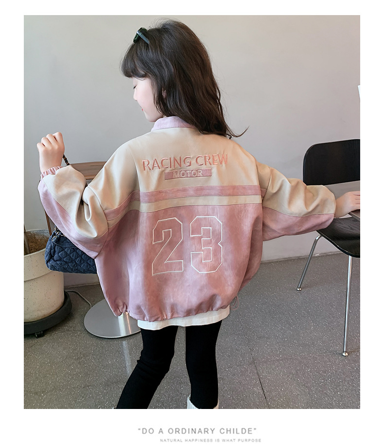 여아 코트 2025 신작 봄 의류 아동 인터넷 연예인 패션 가죽 자켓 봄, 가을 여아 상의 유행