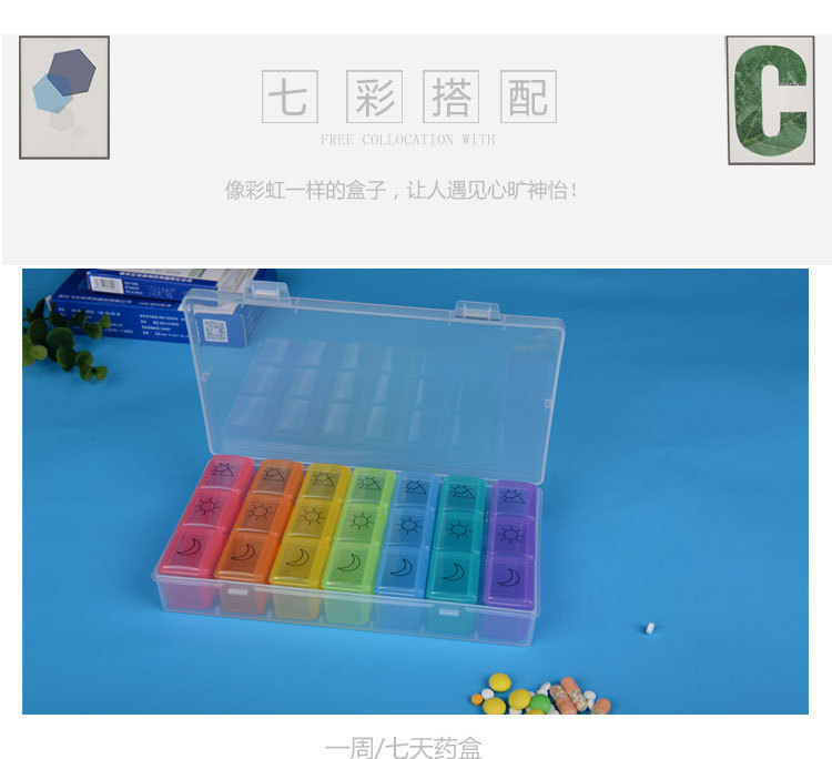 아침, 점심, 저녁 휴대용 7일 대용량 약통, 약통, 노인용 약 절단기, 휴대용 소형 보관함
