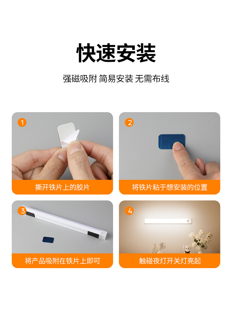 긴 캐비닛 조명, 침대 조명 제어 LED 천 없는 조명 스트립, 복도 자체 접착 센서 전구, 자기 라인 조명 스트립 충전스토어 가기