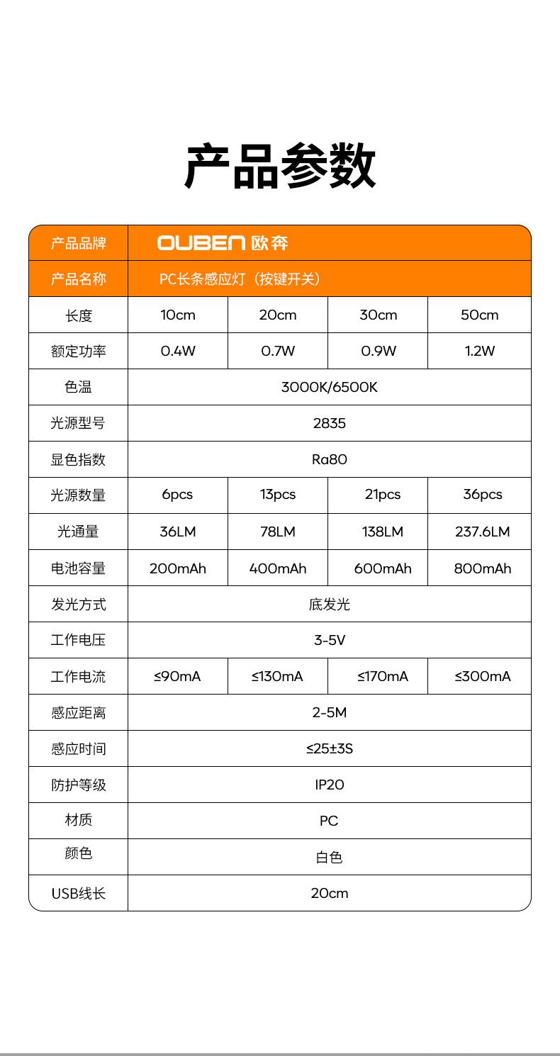 • LN12-긴 센서 조명 10CM-따뜻한 조명