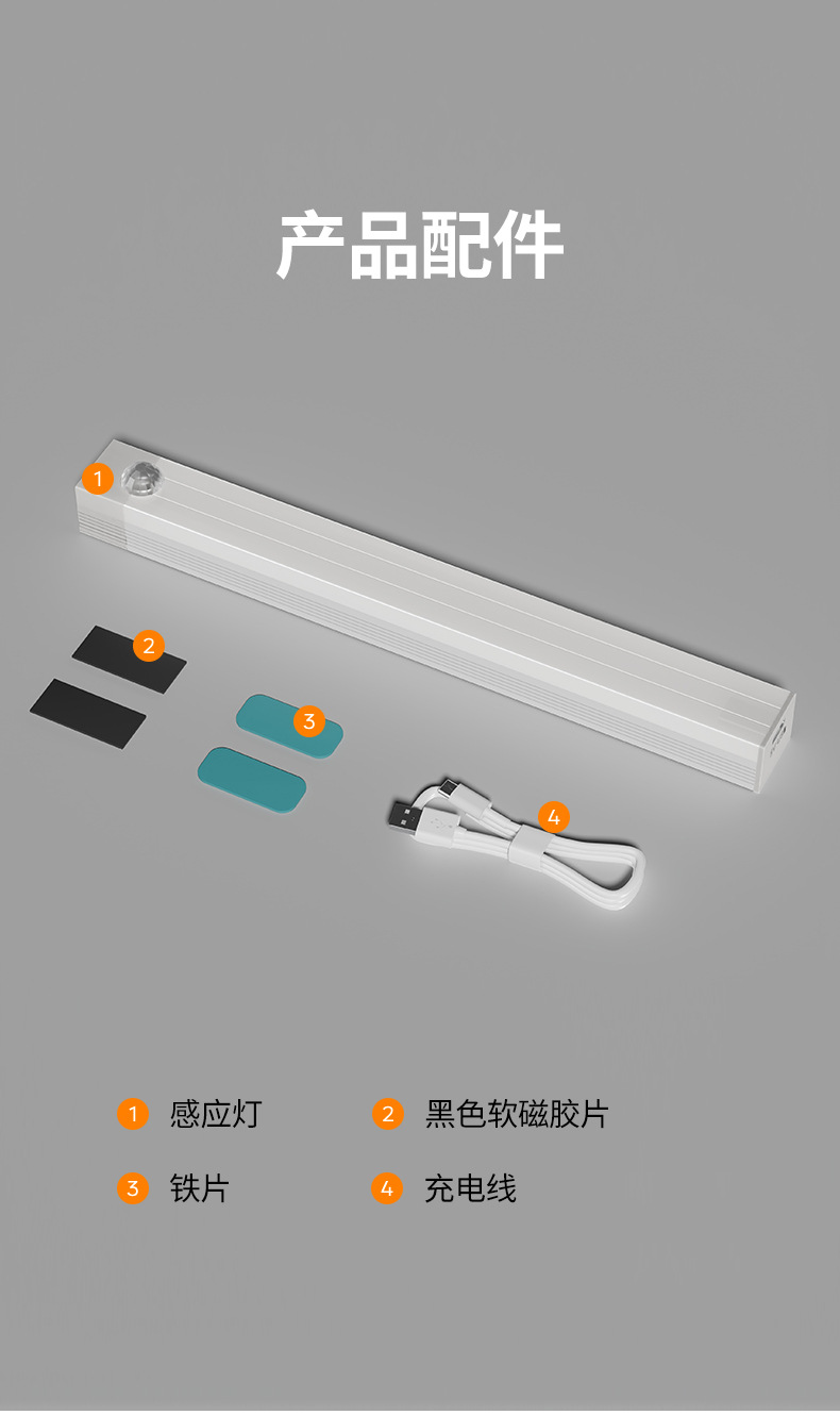 긴 캐비닛 조명, 침대 조명 제어 LED 천 없는 조명 스트립, 복도 자체 접착 센서 전구, 자기 라인 조명 스트립 충전