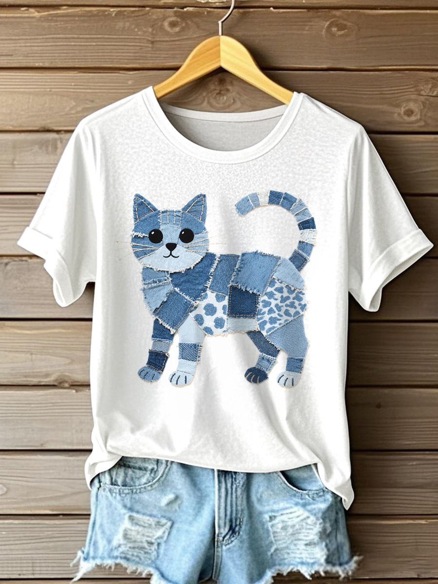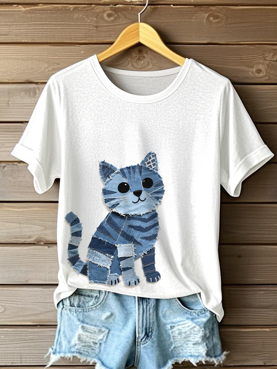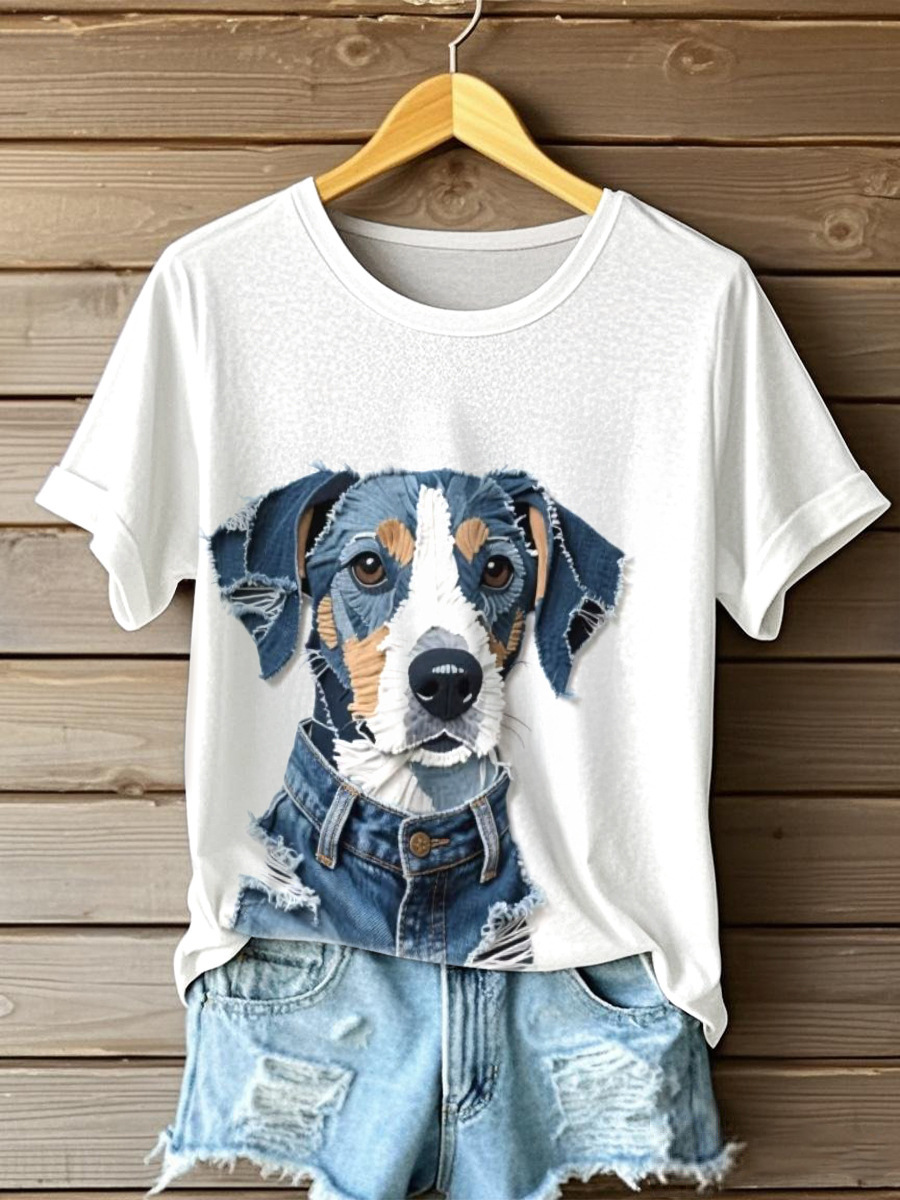 반팔 티셔츠 인기 대외 무역 2025 대외 무역 핫 세일 디지털 인쇄 여성용 라운드 넥 탑 도매 D 제조스토어 가기
