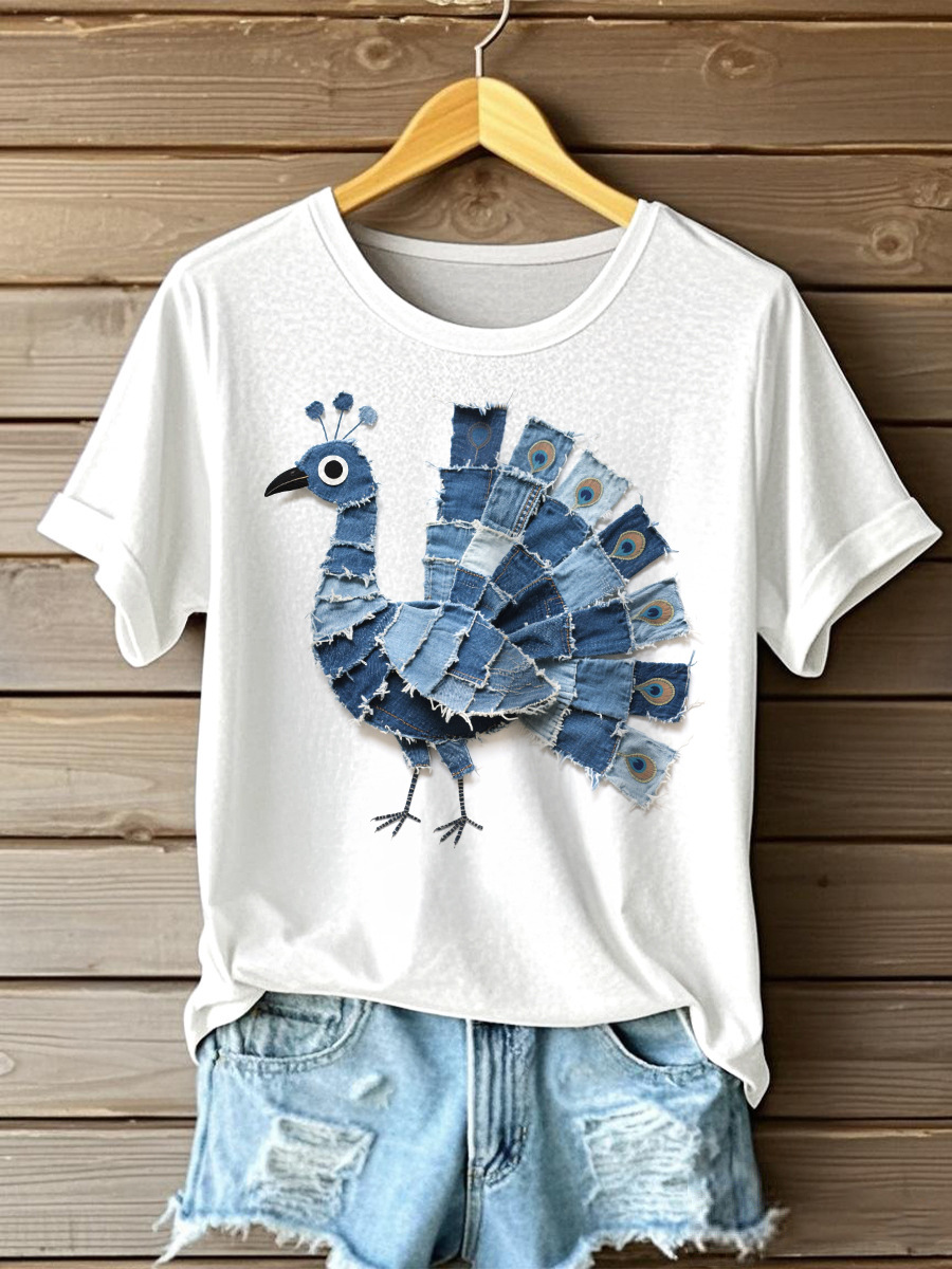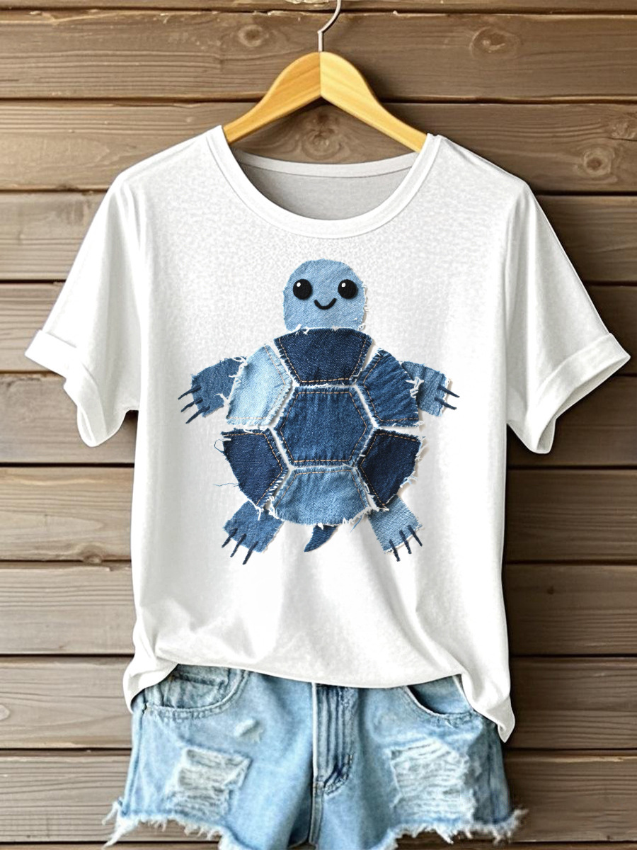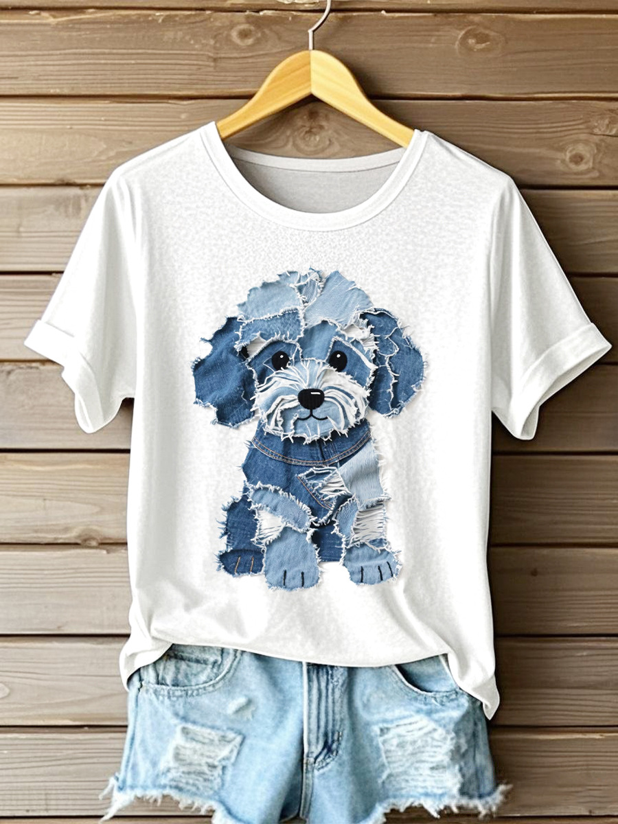 반팔 티셔츠 인기 대외 무역 2025 대외 무역 핫 세일 디지털 인쇄 여성용 라운드 넥 탑 도매 D 제조스토어 가기