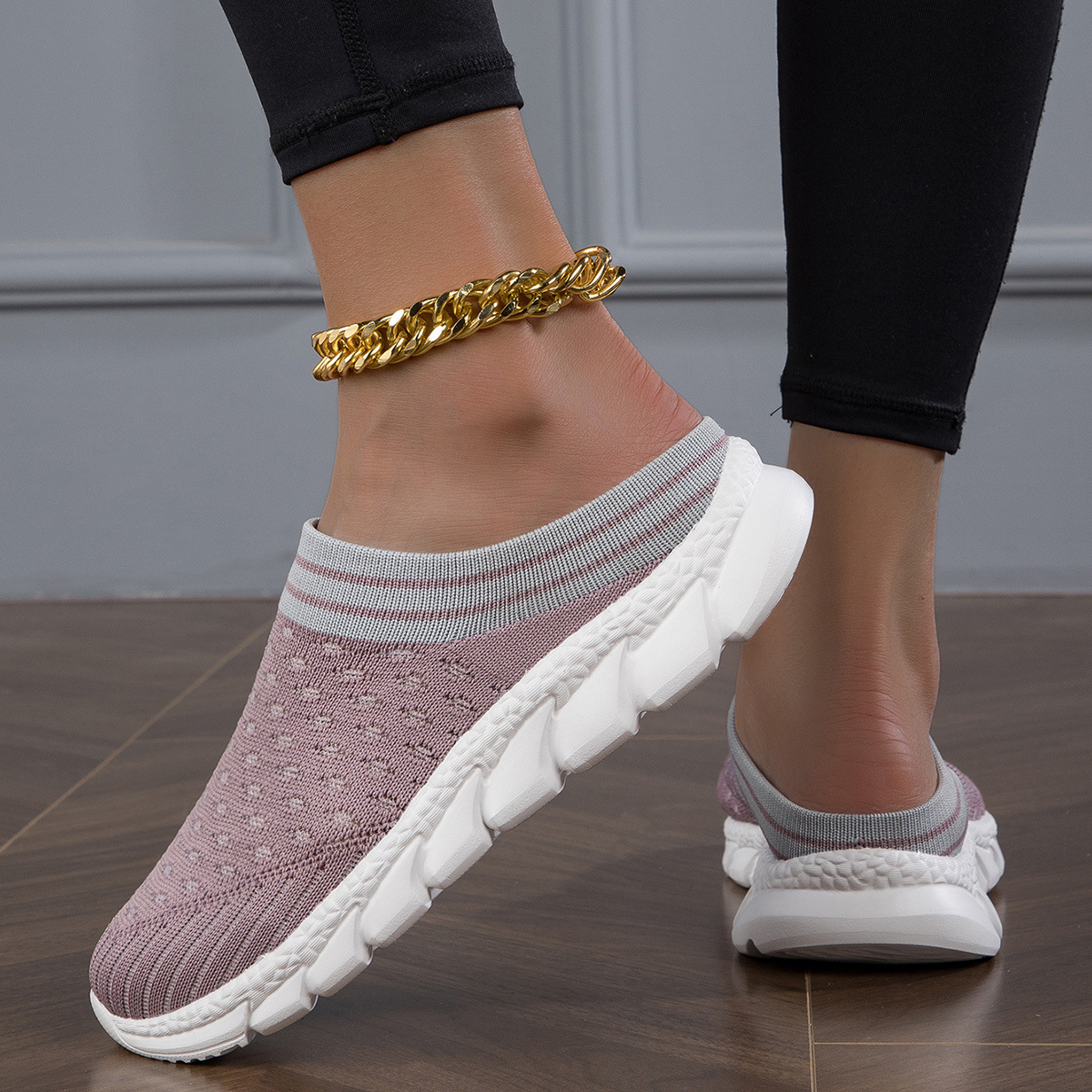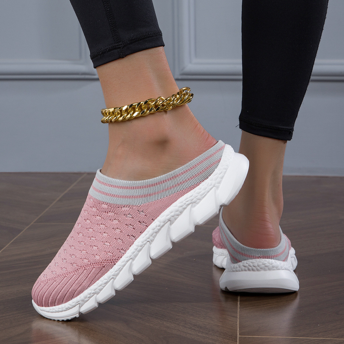 국경을 넘는 새로운 통기성 플라이 니트 양말 하프 슬리퍼 여성 신발 경량 캐주얼 스포츠 여성 신발 대형 슬리퍼