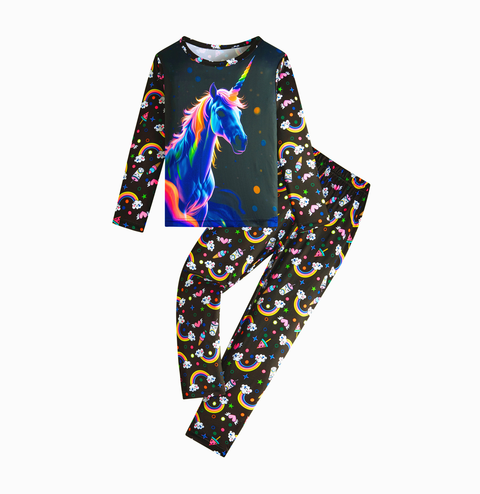 어린이 잠옷 어린이 잠옷 어린이 가정 의류 빛나는 형광 3D 인쇄 소년과 소녀 정장 잠옷스토어 가기