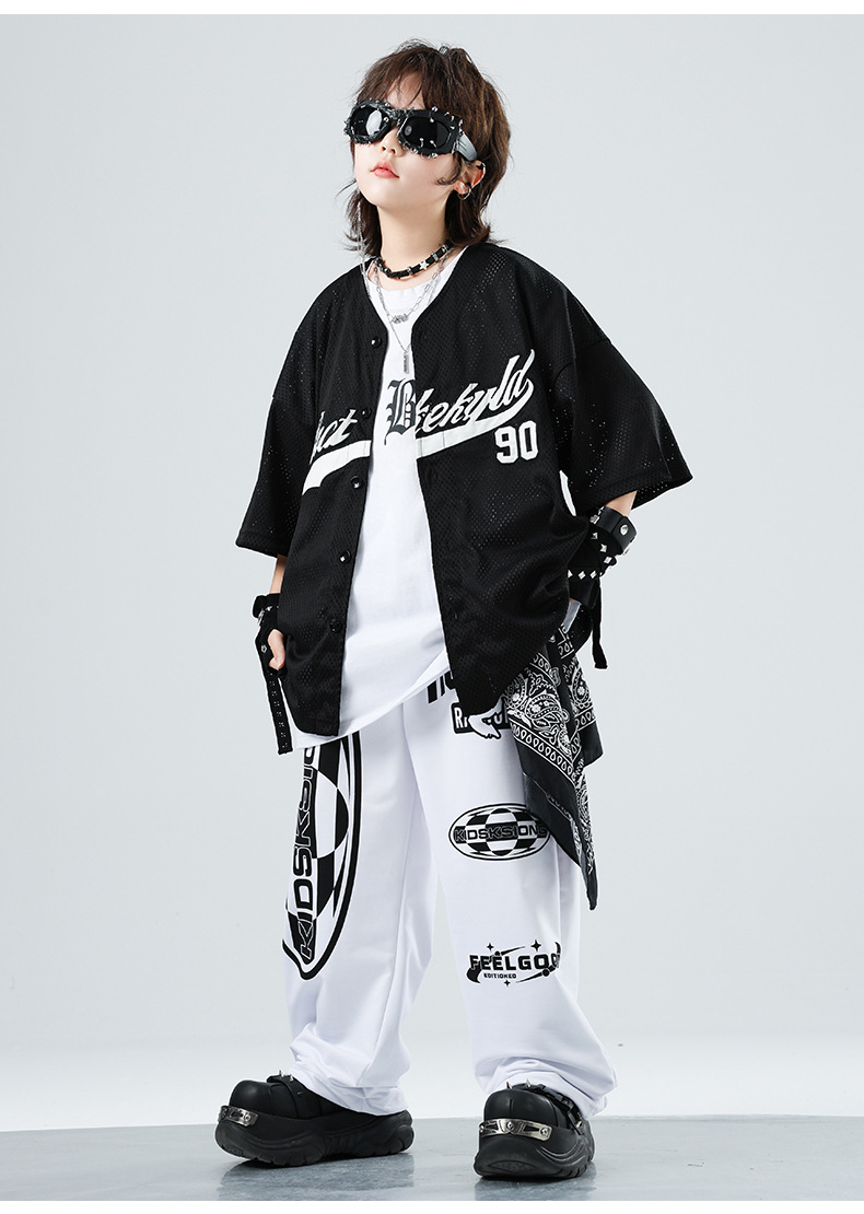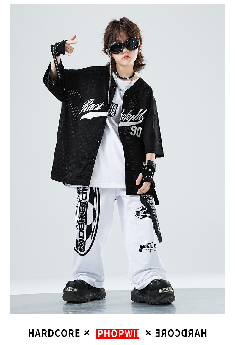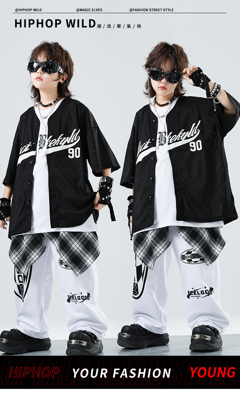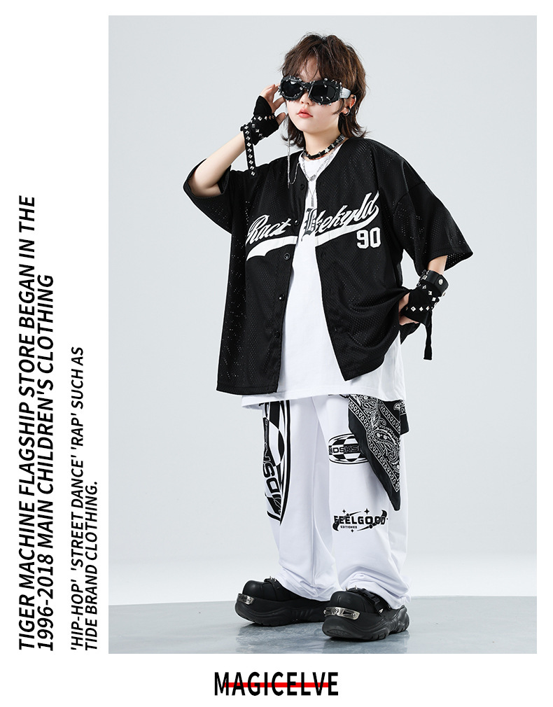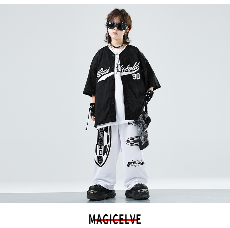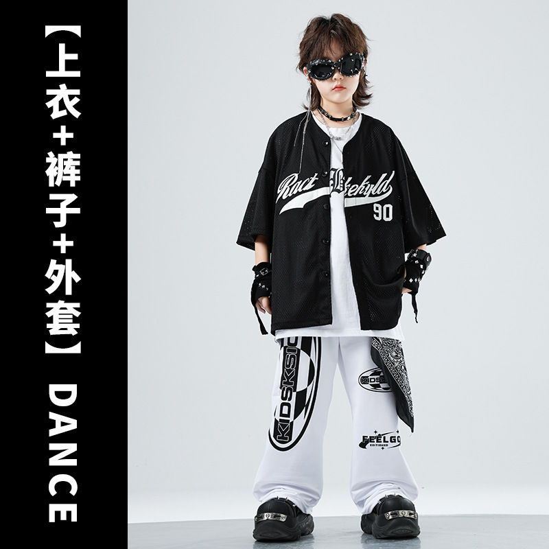 스트리트 댄스 어린이 유행 의류 정장 소년 느슨한 반팔 티셔츠 여름 어린이 힙합 힙합 댄스 공연 의류