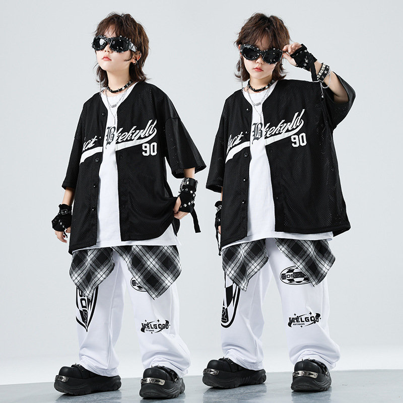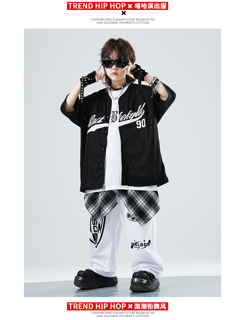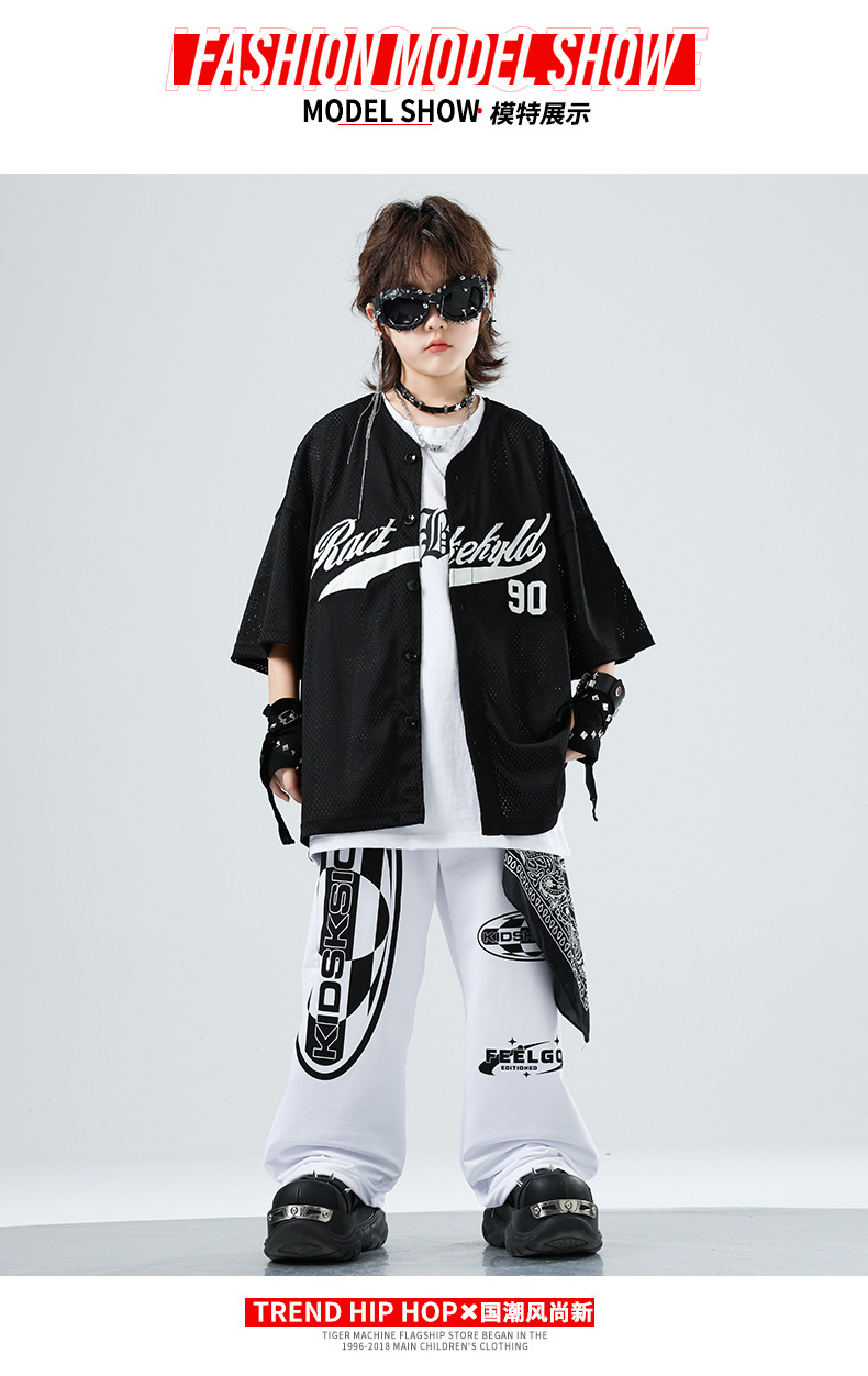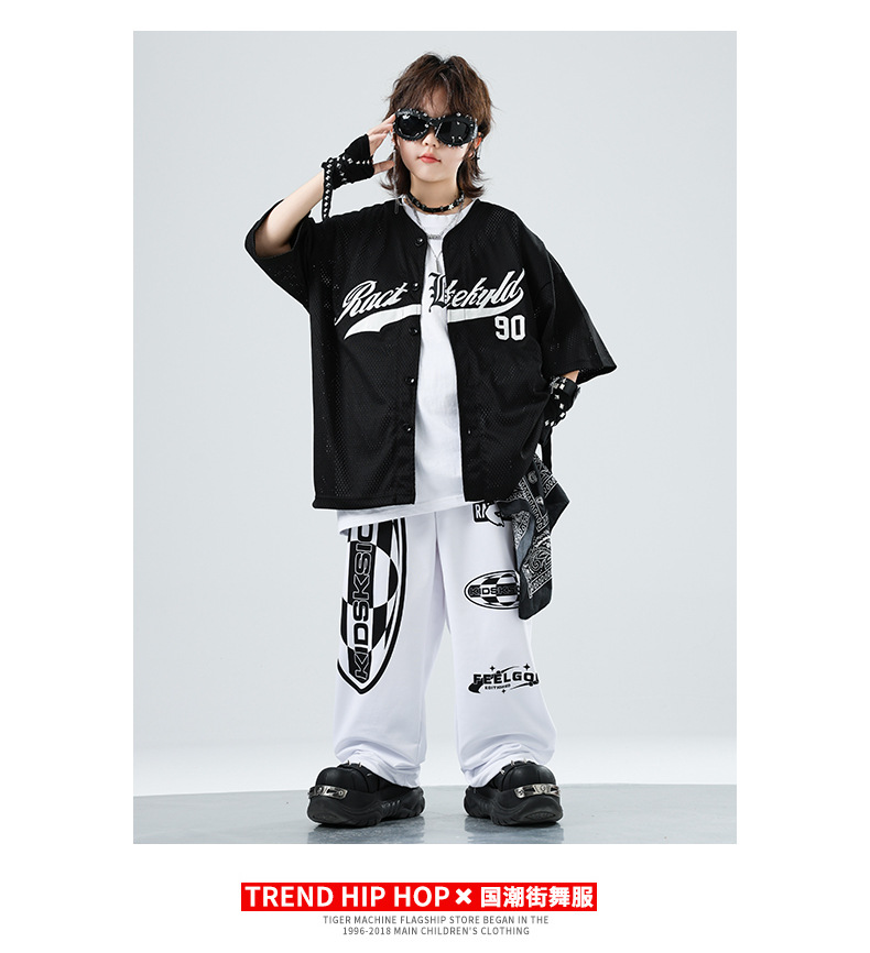 스트리트 댄스 어린이 유행 의류 정장 소년 느슨한 반팔 티셔츠 여름 어린이 힙합 힙합 댄스 공연 의류스토어 가기