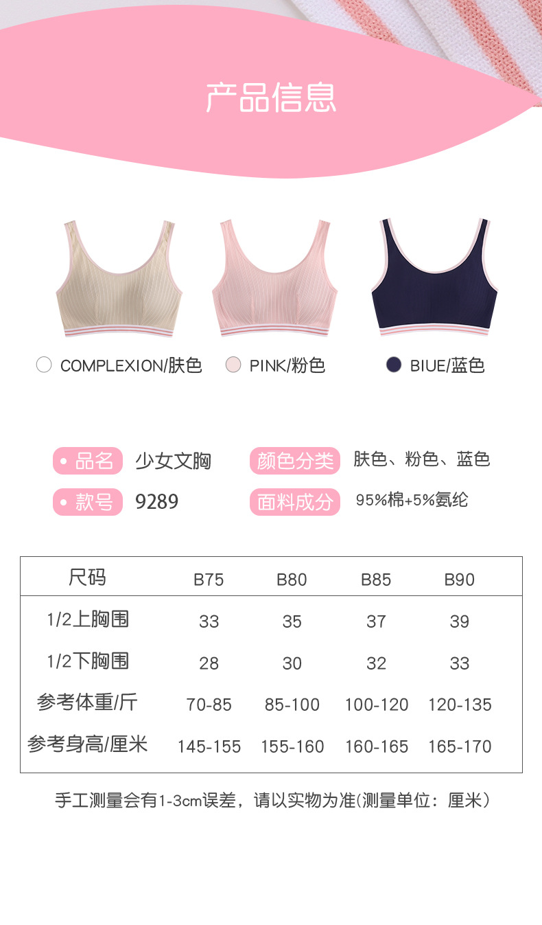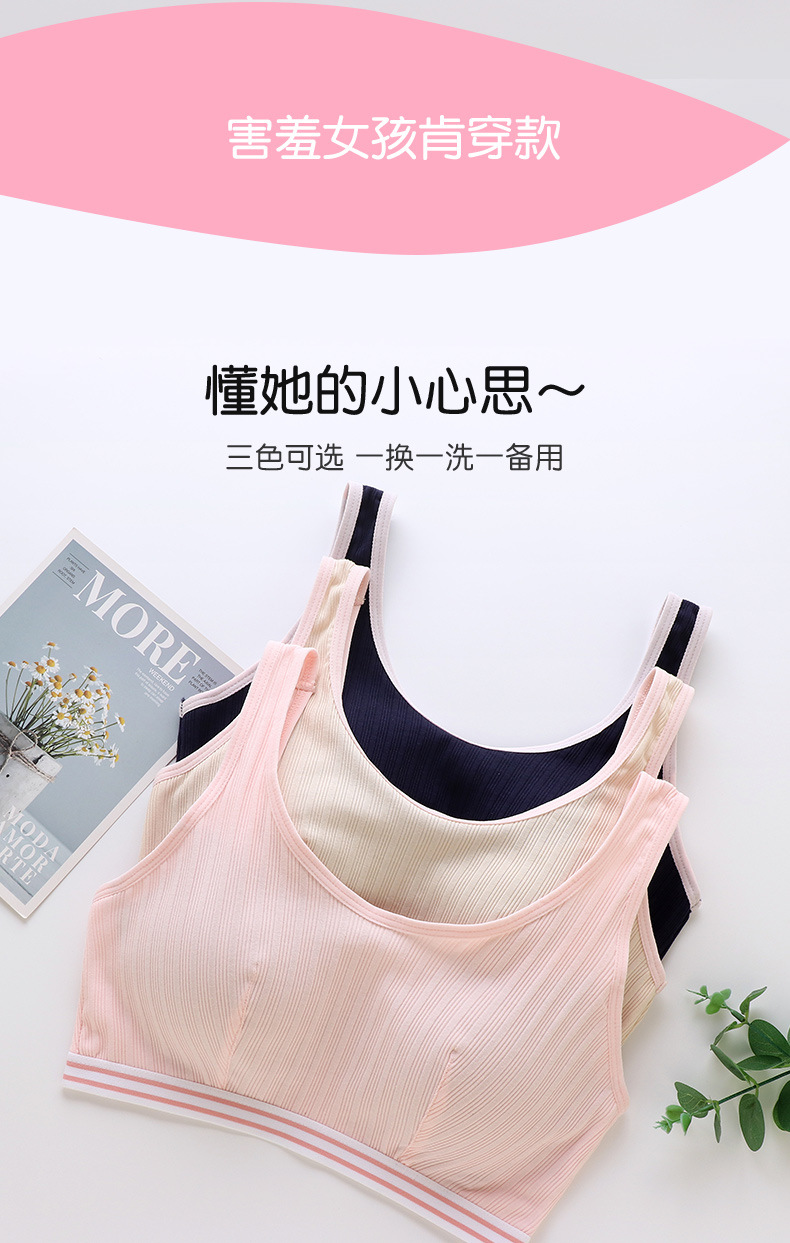 여중생, 여고생을 위한 속옷, 발달기 브라, 사춘기 여아 조끼, 고정컵, 노와이어 여름스토어 가기
