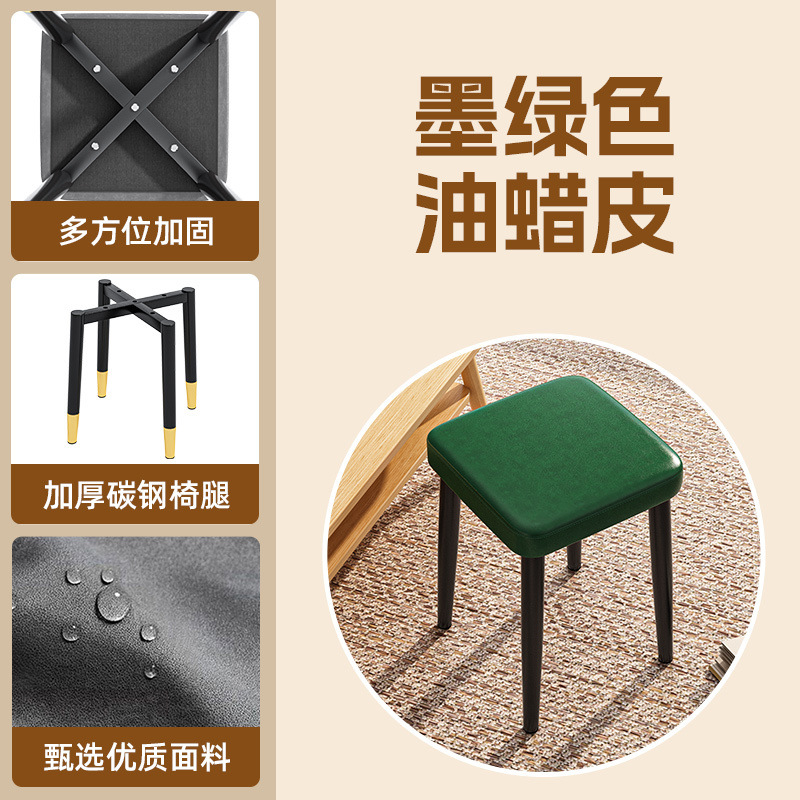 • ·심플한 소프트백 스툴 다이닝 체어(말라카이트 그린) 오일왁스 가죽