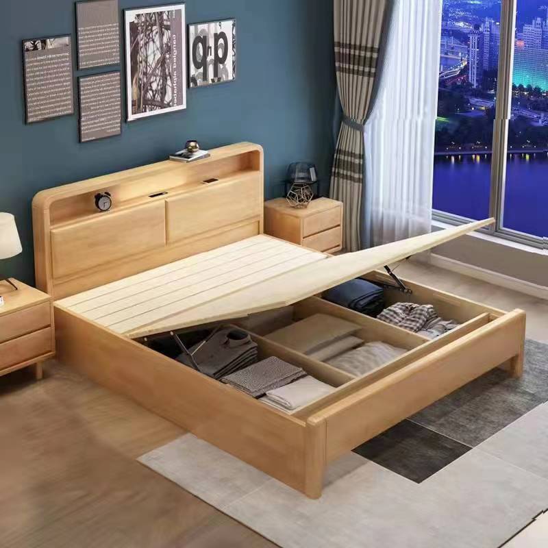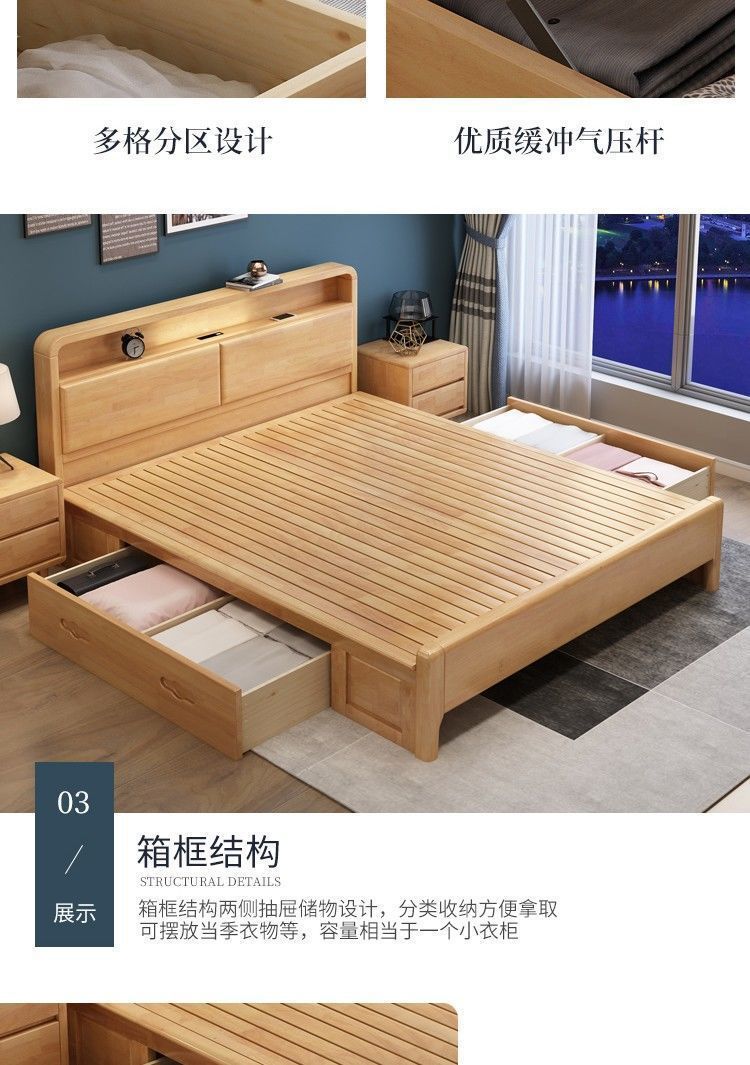 북유럽 전체 단단한 나무 침대 1.5m 어린이 수납 침대 현대 간단한 작은 아파트 홈 침실 1.8m 더블 침대스토어 가기