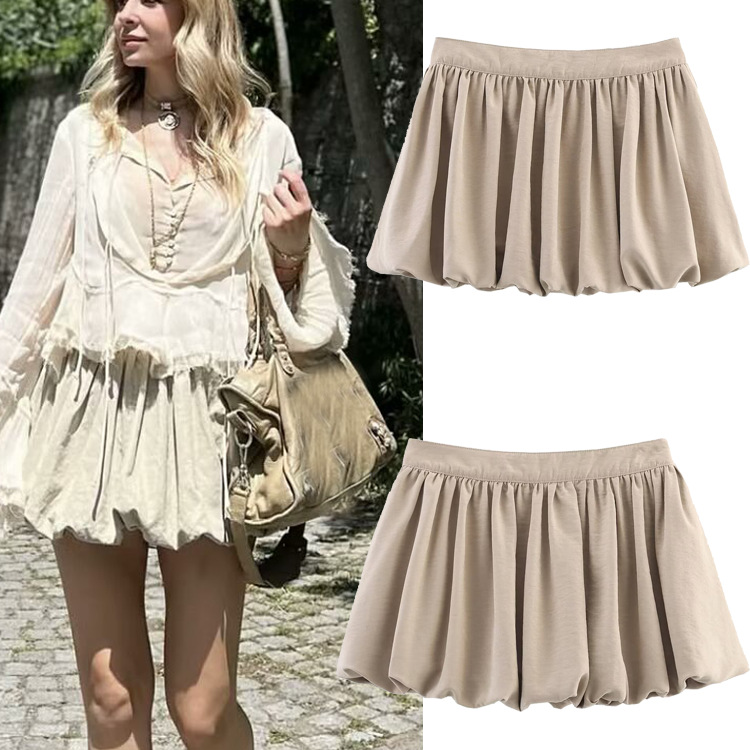 TRAFZA 크로스보더 봄 신작 여성 유럽과 미국 스타일의 패셔너블하고 심플한 다용도 랜턴 미니 스커트