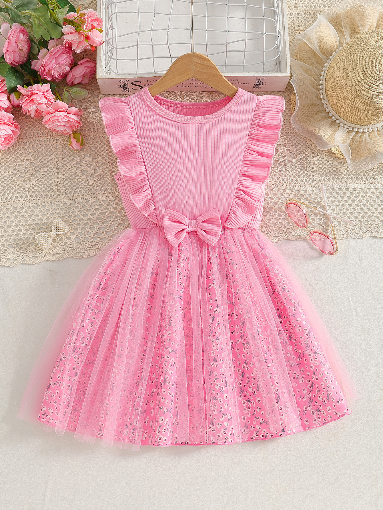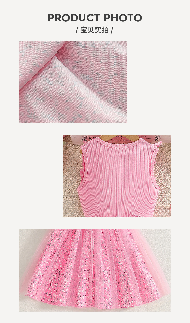 여자 여름 드레스 핑크 핏 스트라이프 스플 라이스 거즈 투투 스커트 꽃 스커트 중형 및 대형 어린이 A 라인 스커트스토어 가기