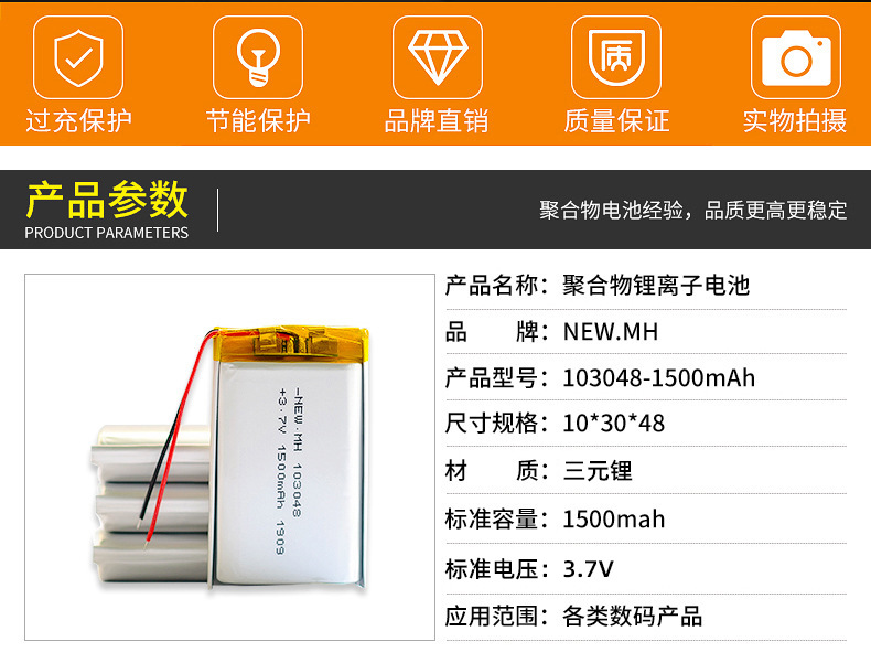 폴리머 리튬 배터리 103048-1500mah 셀카봉 미용 기기 전자 담배 배터리 충전식 3.7V스토어 가기