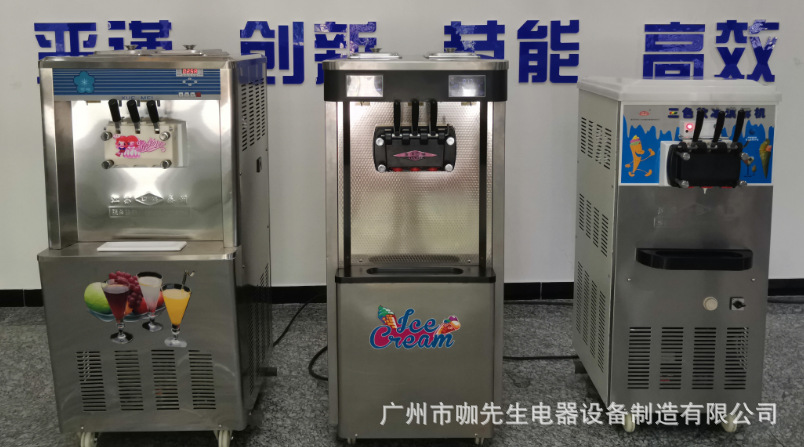 카씨 부드러운 아이스크림 기계, 상업용 고품질 스테인리스 스틸 수직형 3구 대용량 콘 아이스크림 기계스토어 가기