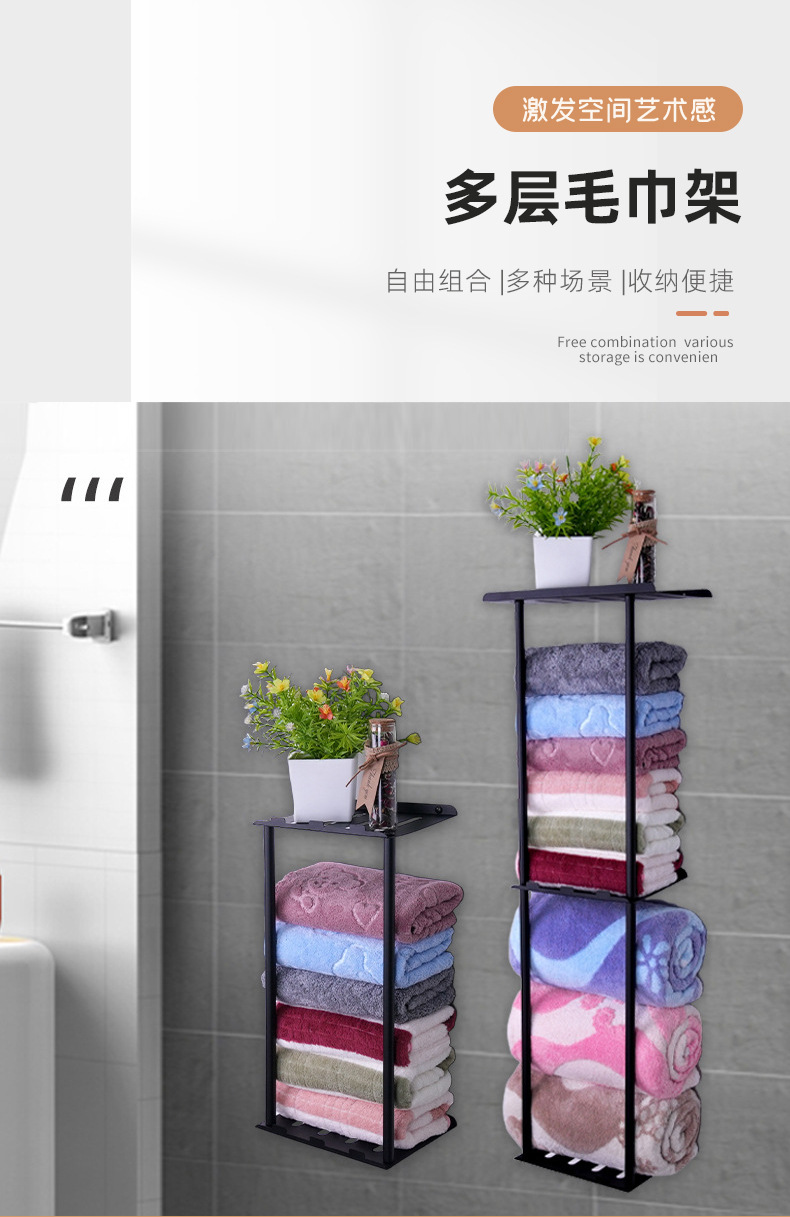 벽걸이형 다층 욕실 수건걸이 철제 페인트 침실 주방 고층 수납 선반 방수 및 녹 방지