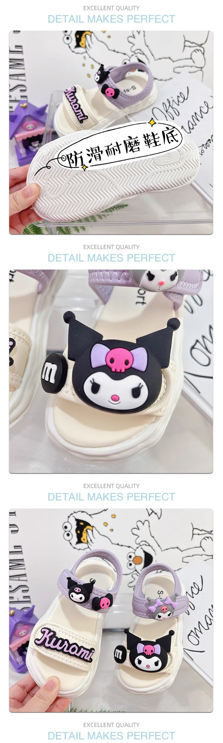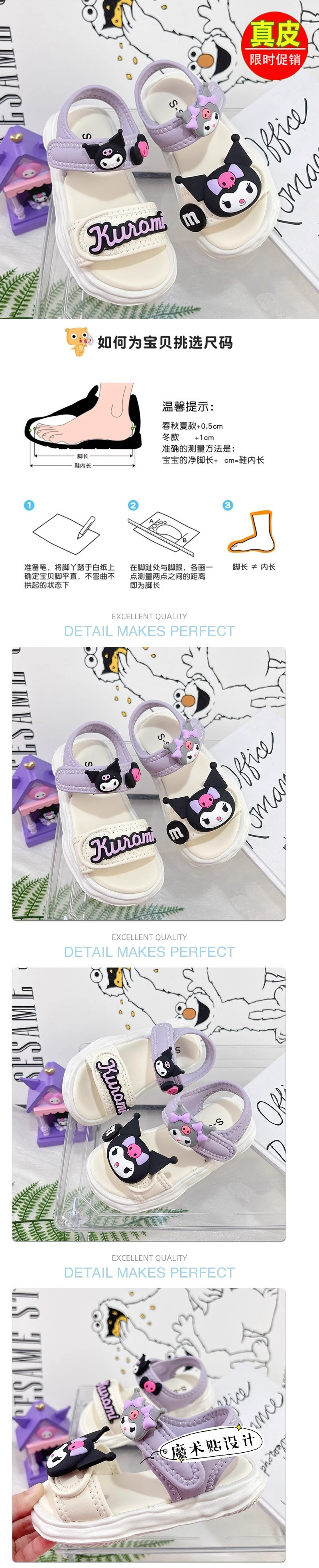 보라색 나비 매듭 쿠로미 샌들 방수 및 편안한 여름 유행 멋진 소녀 여름 2025 새로운 트렌드스토어 가기