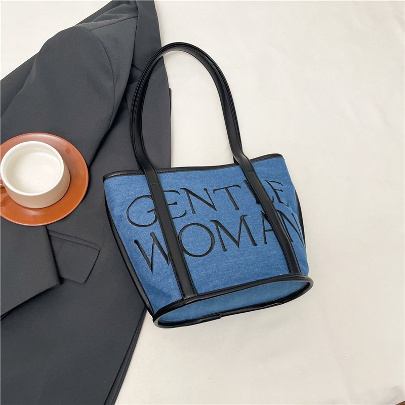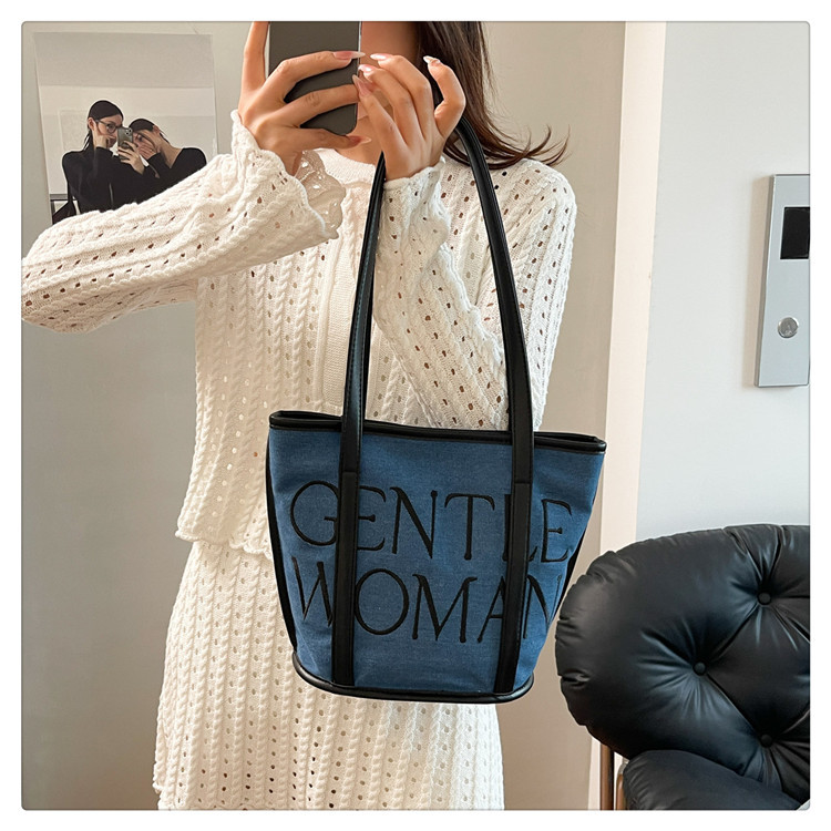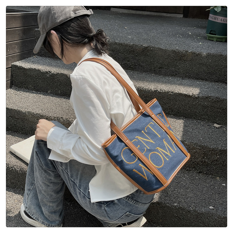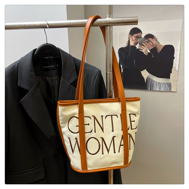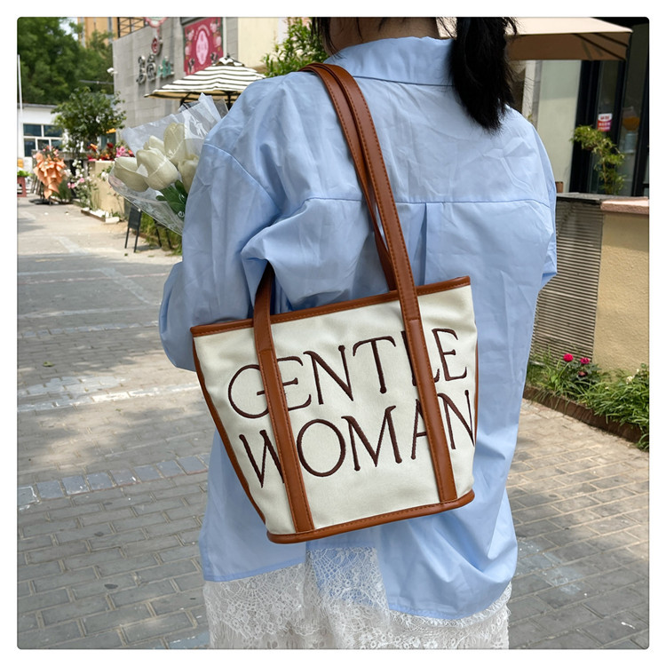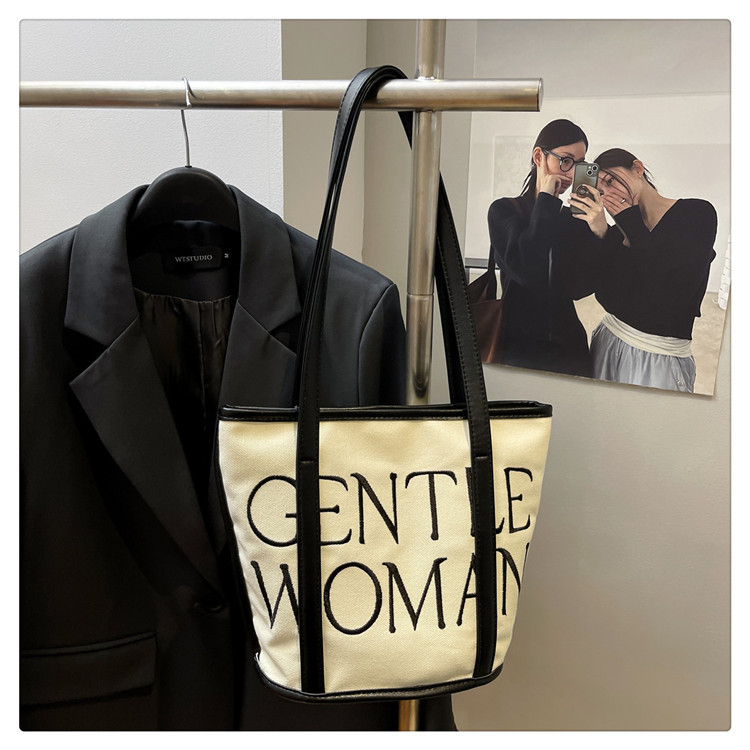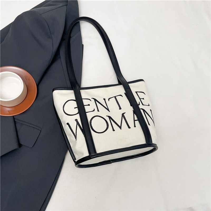 GentleWoman 자수 문자 야채 바구니 캔버스 가방 2025 새로운 대비 색상 캐주얼 휴대용 숄더백