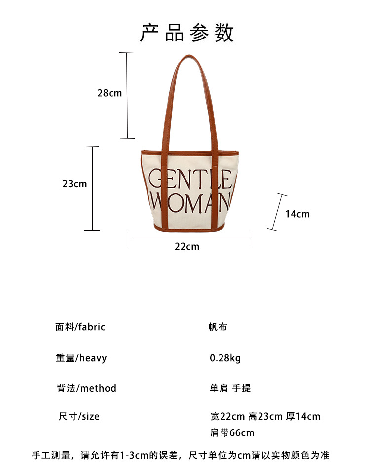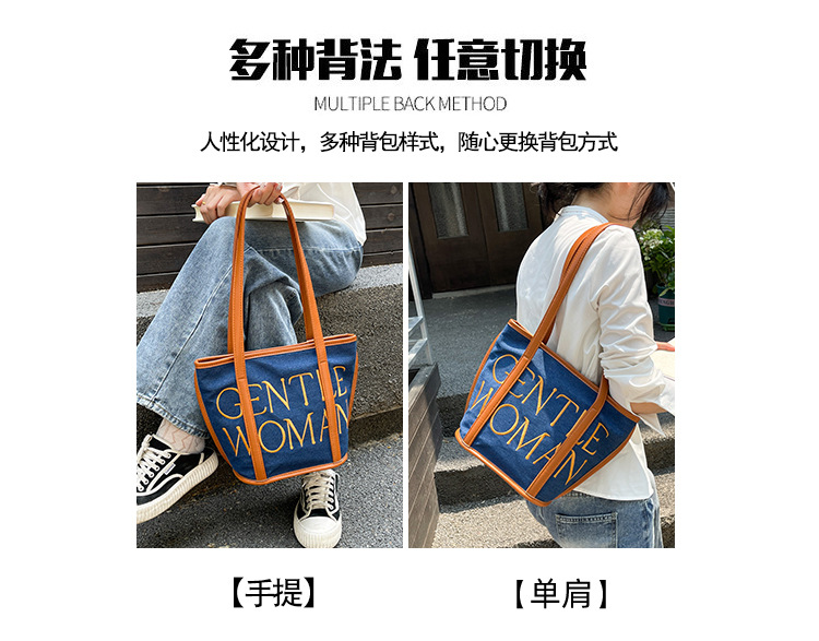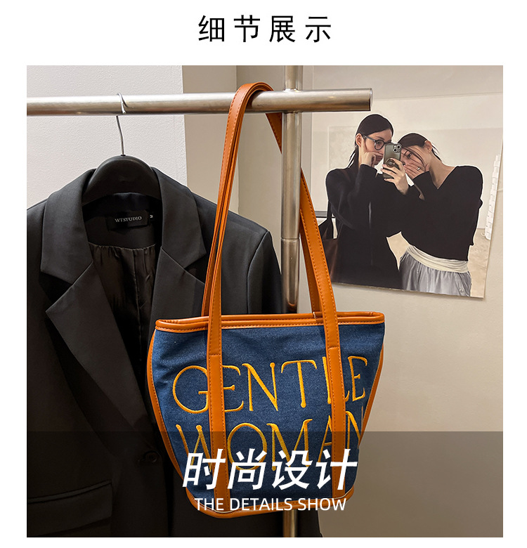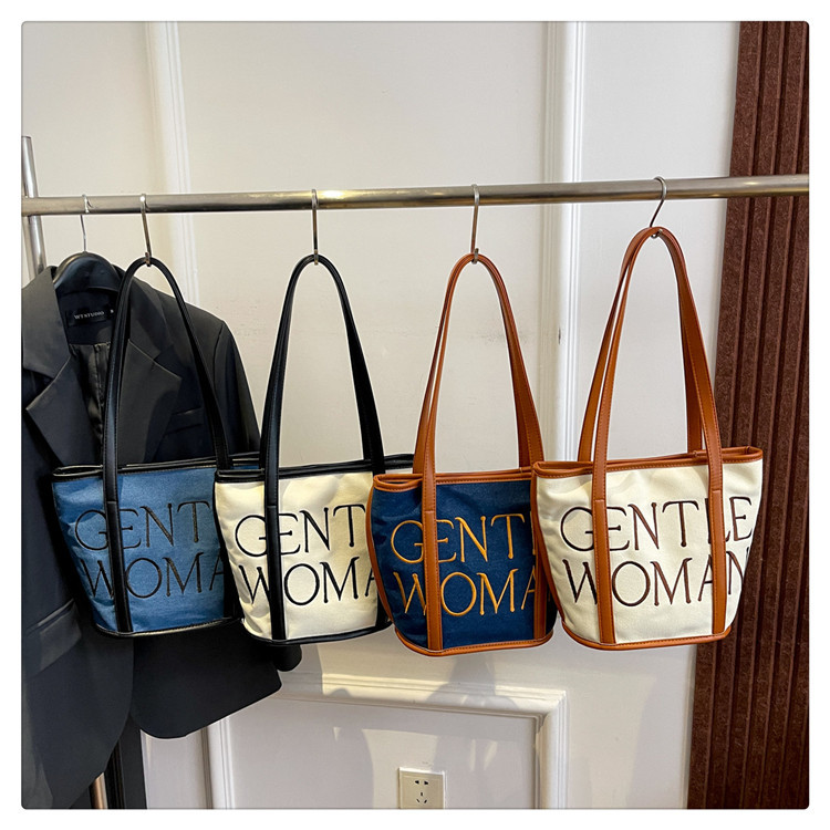 GentleWoman 자수 문자 야채 바구니 캔버스 가방 2025 새로운 대비 색상 캐주얼 휴대용 숄더백스토어 가기