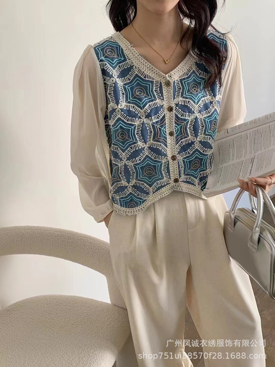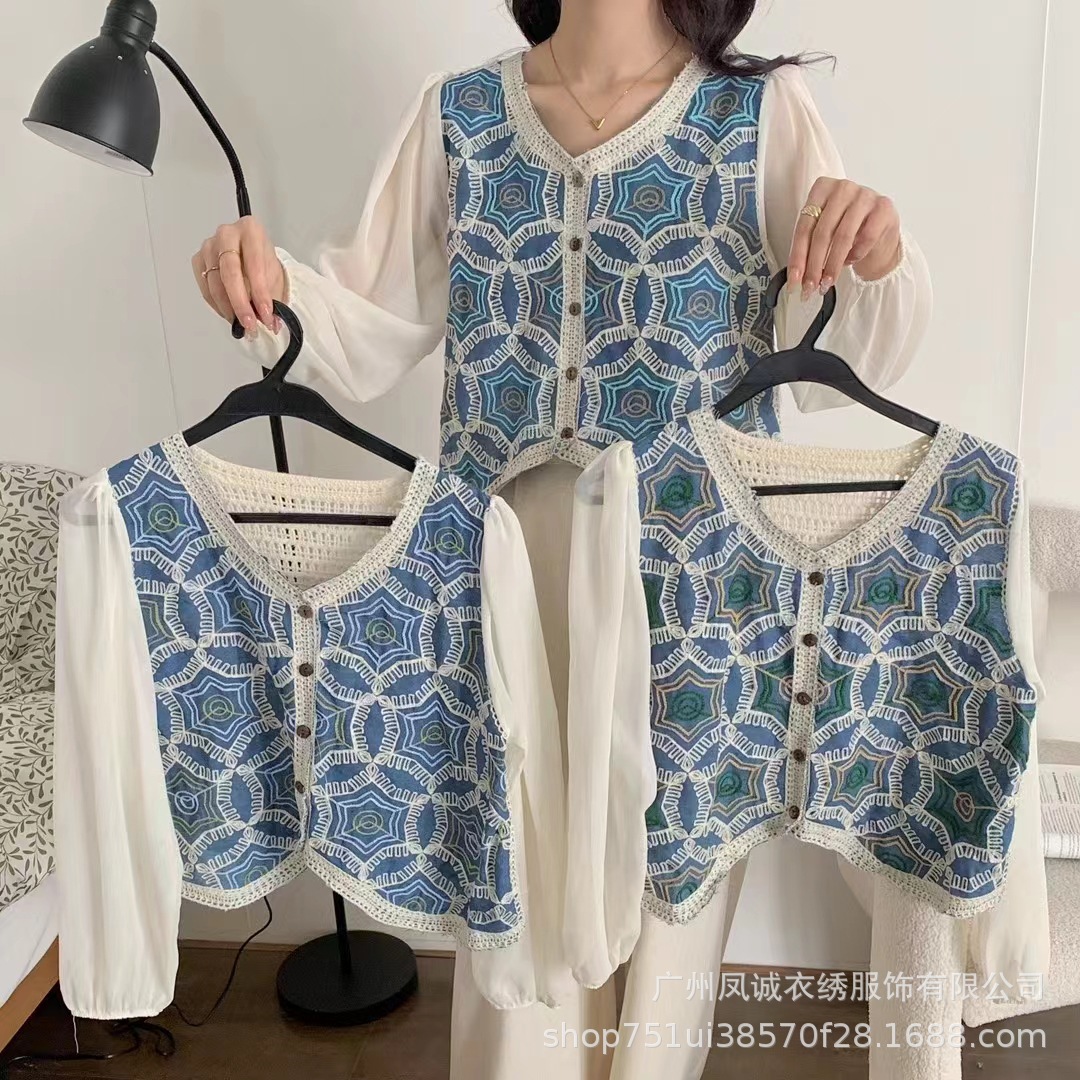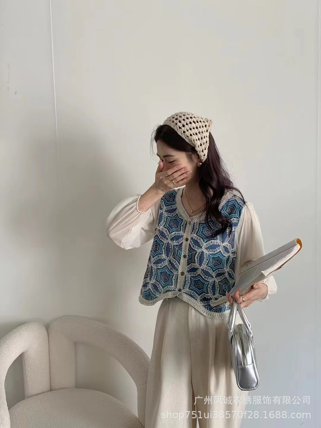작은 여성들을 위한 독특하고 시크한 스플라이스 쉬폰 긴팔 크로셰 니트 가디건, 초봄 니치 스타일의 쇼트 탑스토어 가기