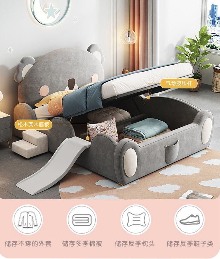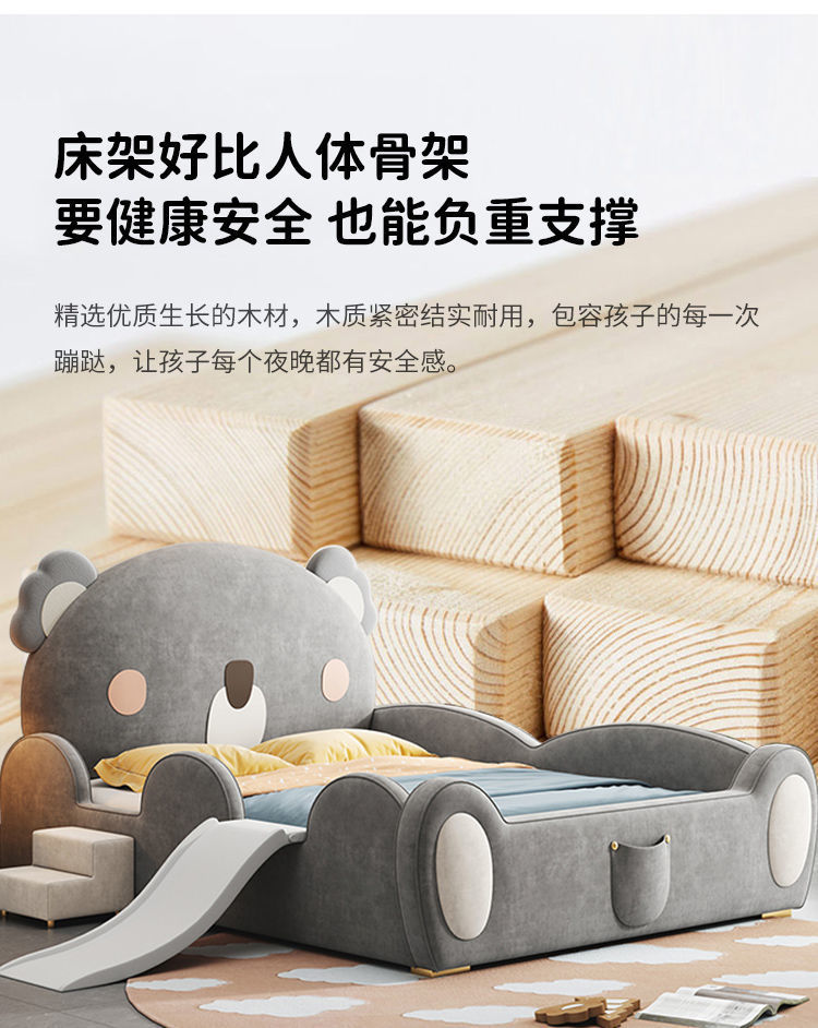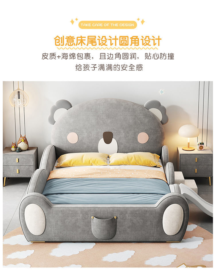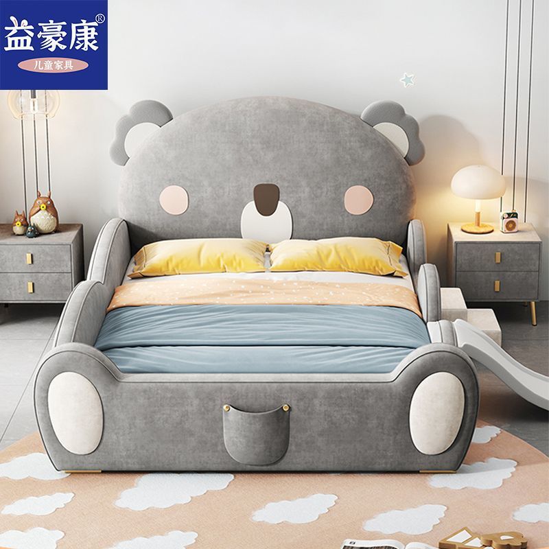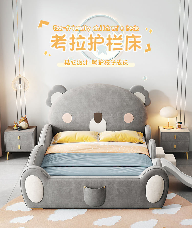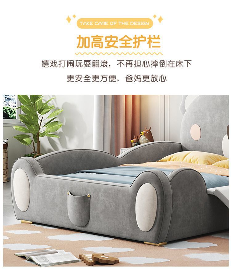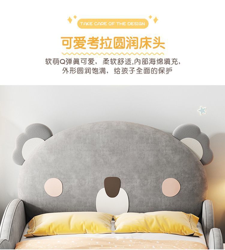 어린이 침대 소년 코알라 벨벳 침대 소프트 팩 충돌 방지 아기 슬라이드 침대 가벼운 고급 싱글 침대 가드 레일 소년 침대스토어 가기