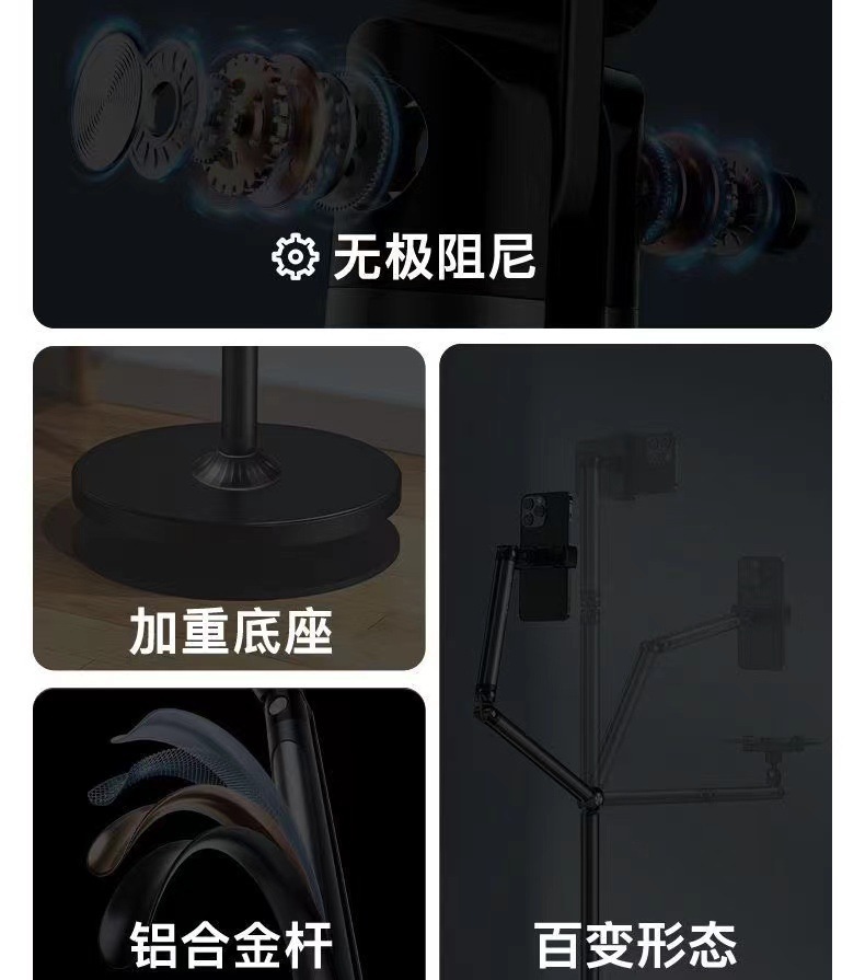 • 8A 이중 암 텔레스코픽 스탠드 태블릿 버전(휴대폰 클립 포함)