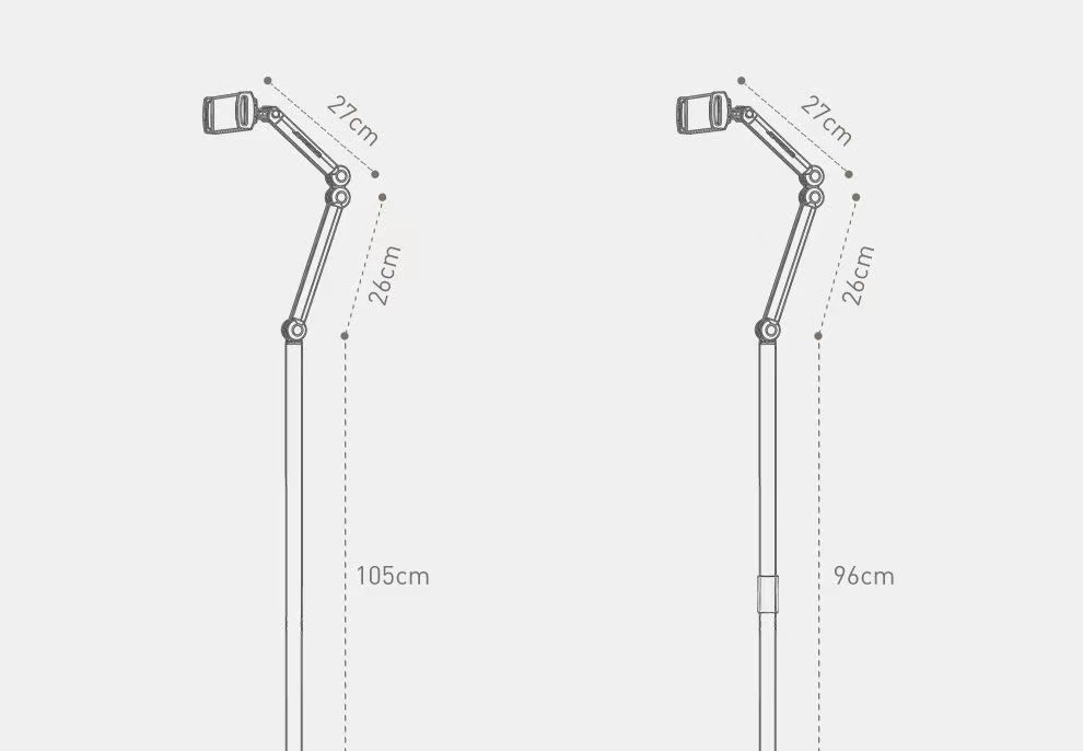 • 이중 암 텔레스코픽 플로어 스탠드 모바일 버전