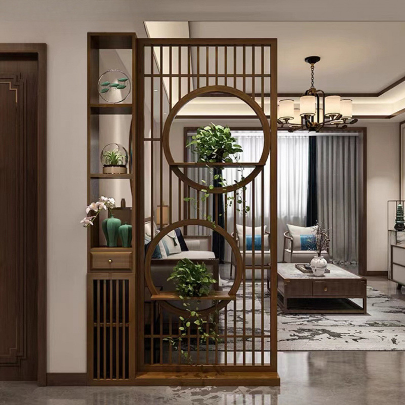새로운 중국 스타일의 Bogu 선반 단단한 나무 스크린 파티션 거실 차단 홈 중공 입구 캐비닛 스크린 캐비닛