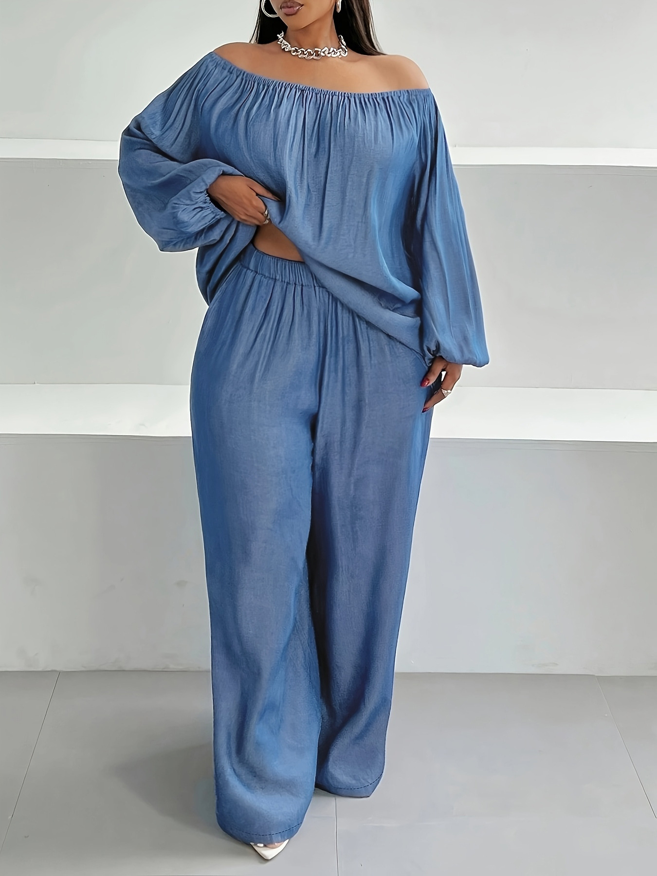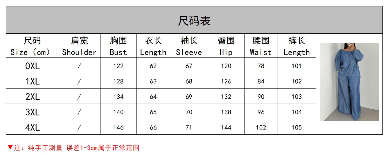 국경 간 여성 의류 Amazon AliExpress 플러스 사이즈 원라인 칼라 탑과 바지 캐주얼 루즈 투피스 슈트 봄 여름스토어 가기