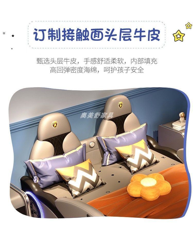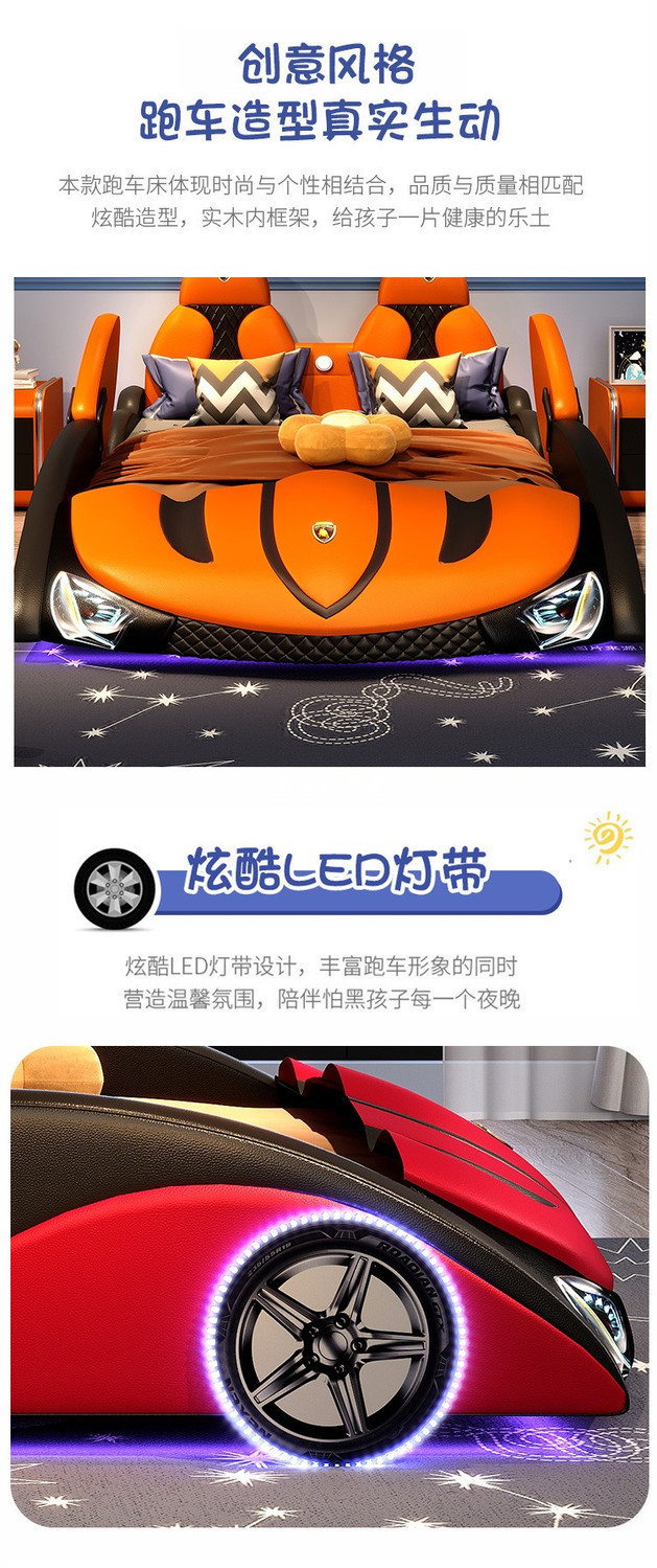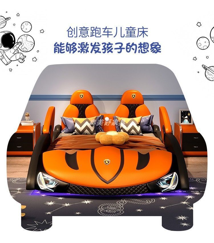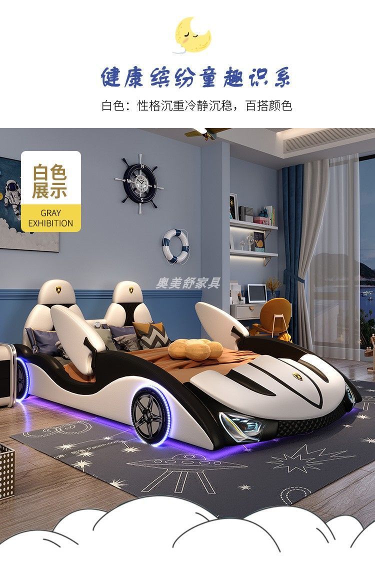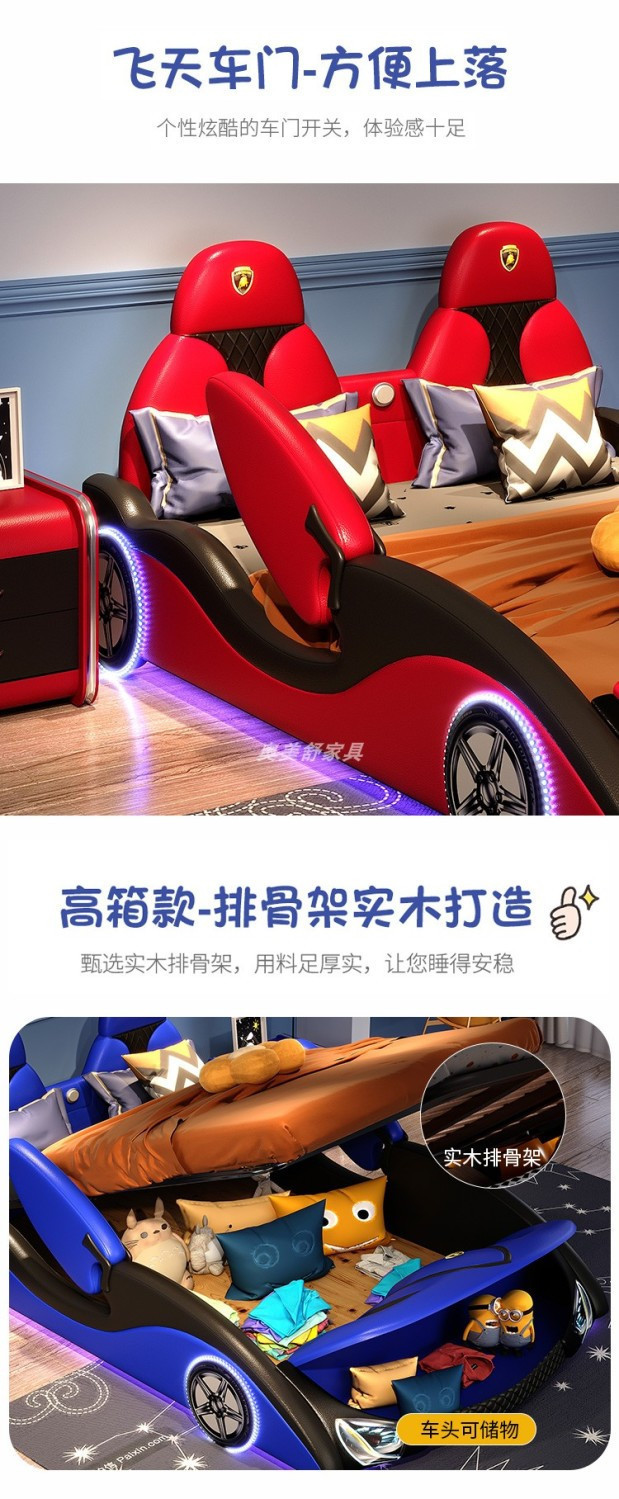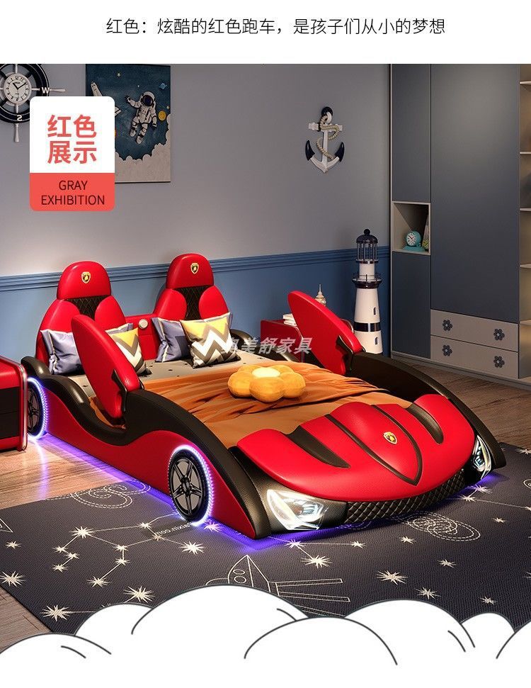 현대 간단한 어린이 침대 소년 만화 스포츠카 침대 가드 레일 싱글 침대 인터넷 연예인 어린이 방 가죽 침대스토어 가기