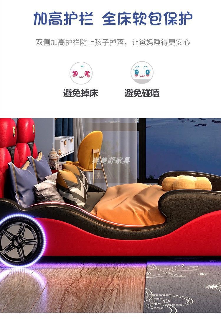 현대 간단한 어린이 침대 소년 만화 스포츠카 침대 가드 레일 싱글 침대 인터넷 연예인 어린이 방 가죽 침대