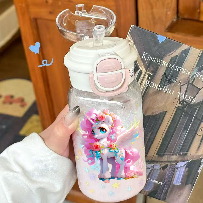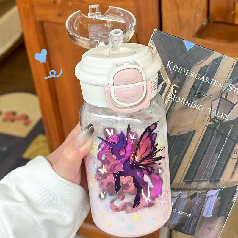 마이 리틀 포니 어린이 플라스틱 컵 야외 유치원 어린이 여름 밀짚 컵 고온 방지 학생스토어 가기