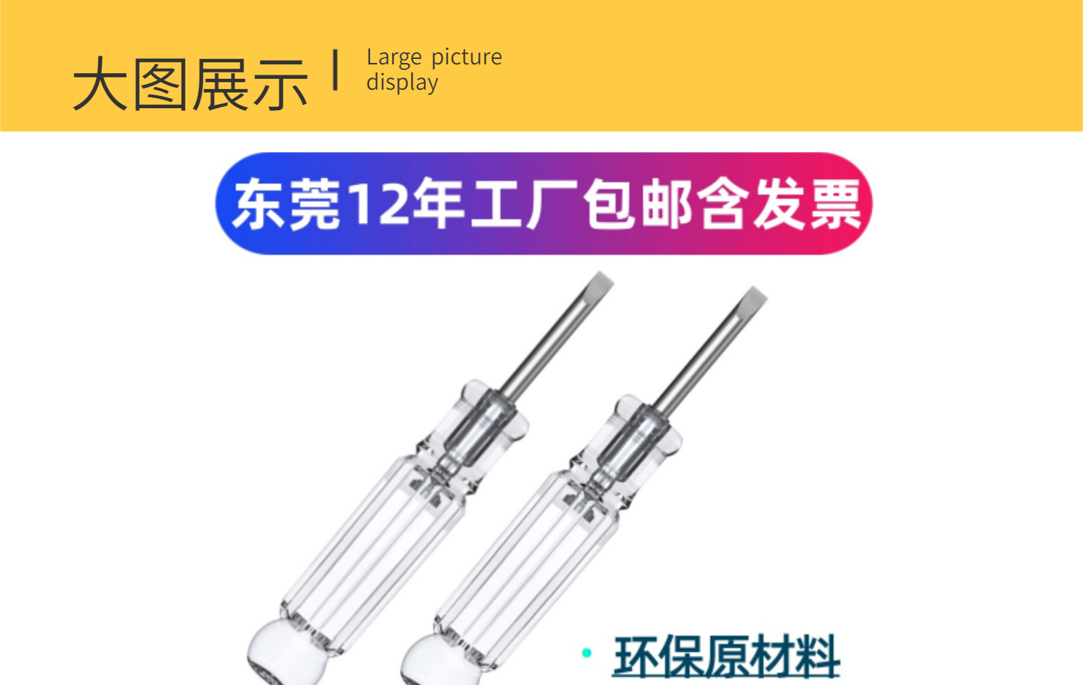 Huahengxin Dongguan 제조업체 환경 친화적인 자기 경화 투명 크리스탈 80mm 일자 드라이버 소형 드라이버 배치