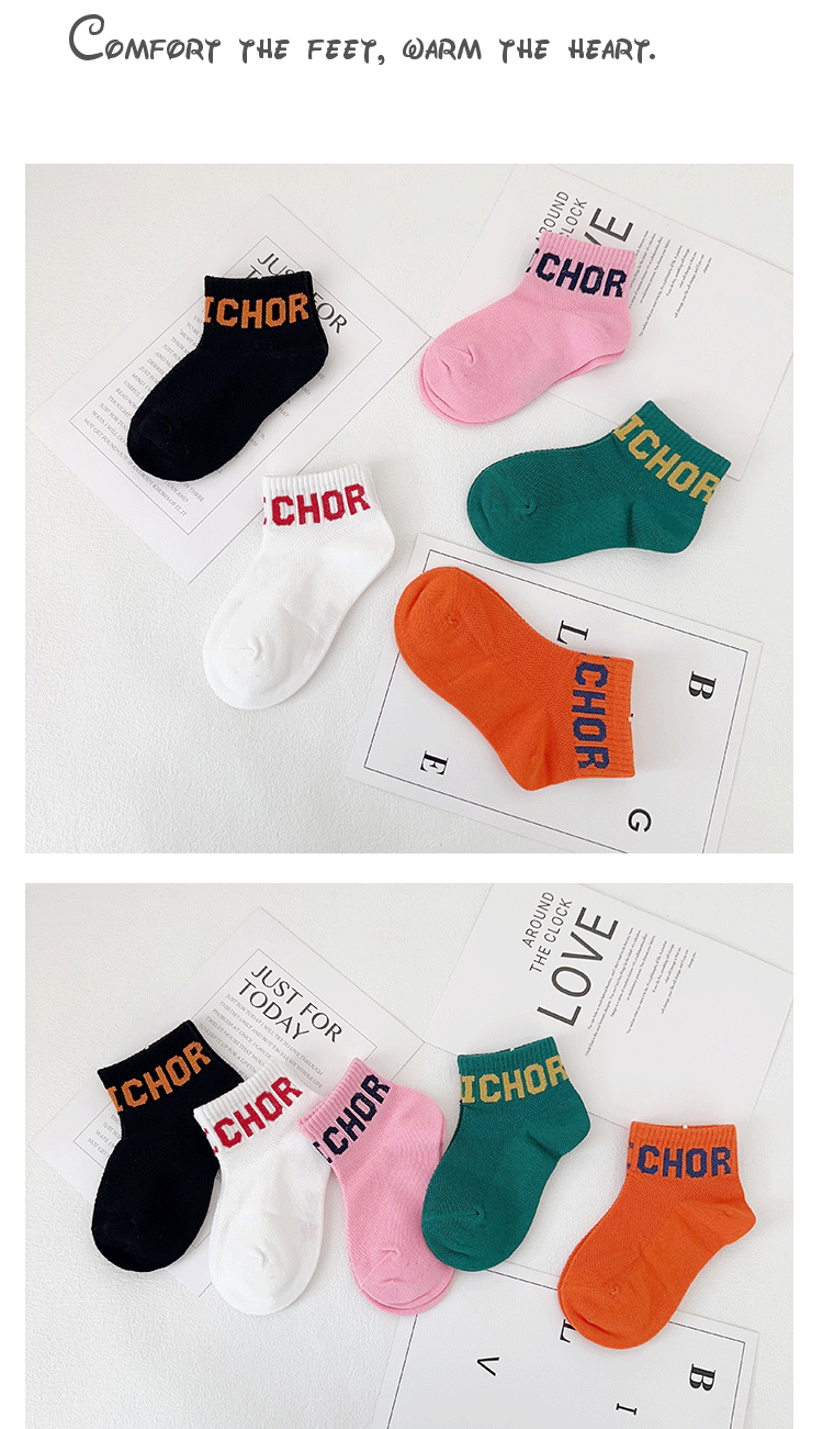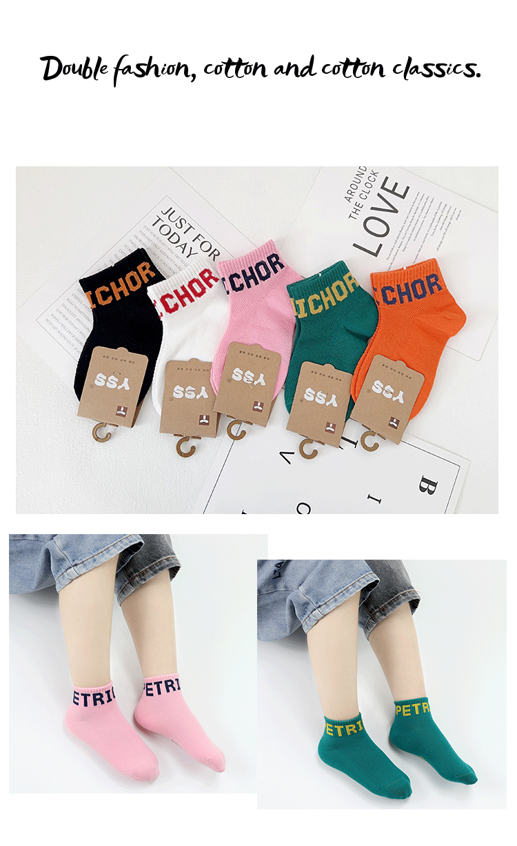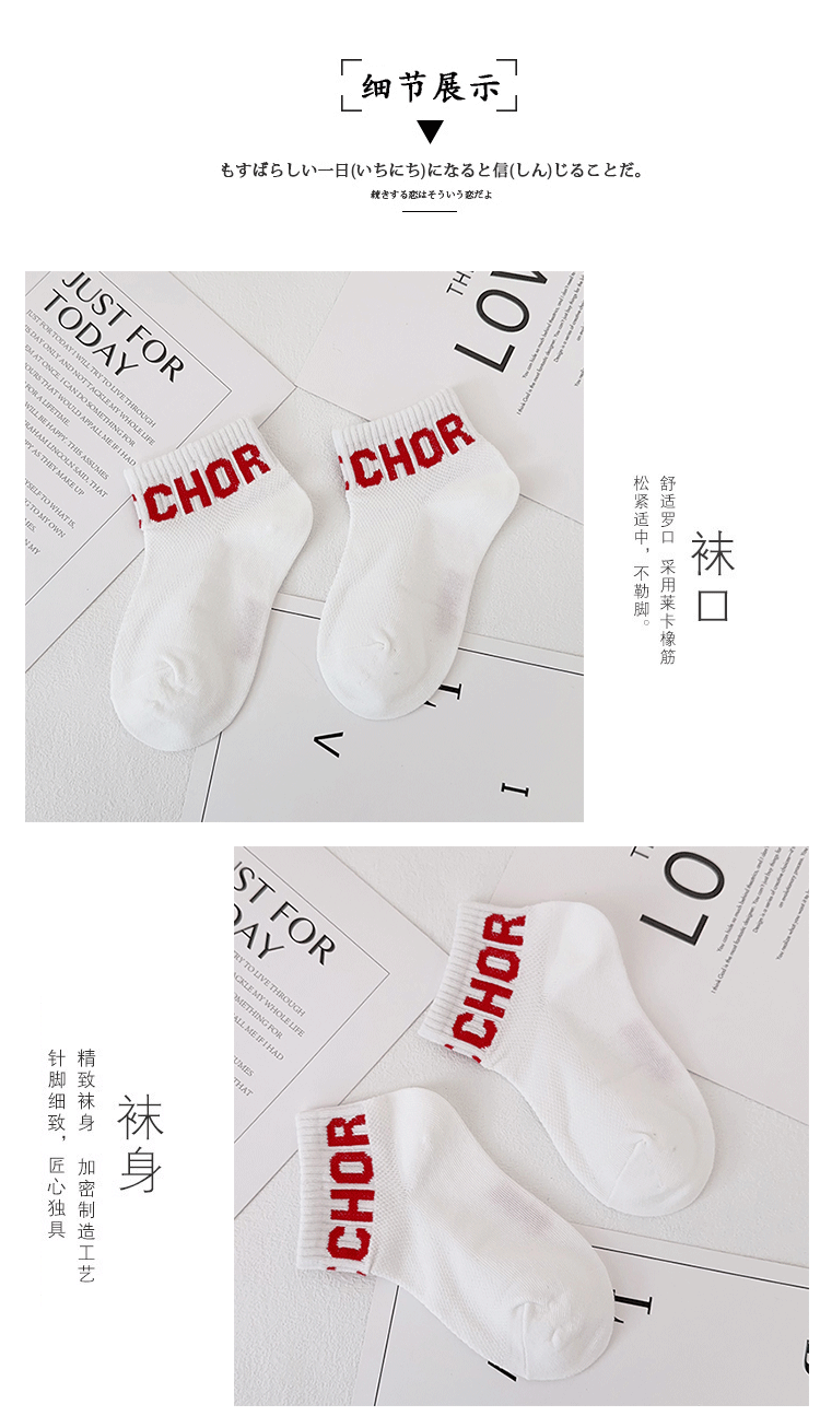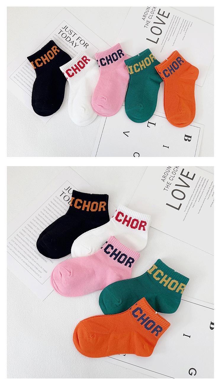Yi Shuang 어린이 양말 여름 메쉬 통기성 유행 브랜드 편지 짧은 양말 빗 코튼 다채로운 뼈없는 어린이 양말 스포츠스토어 가기