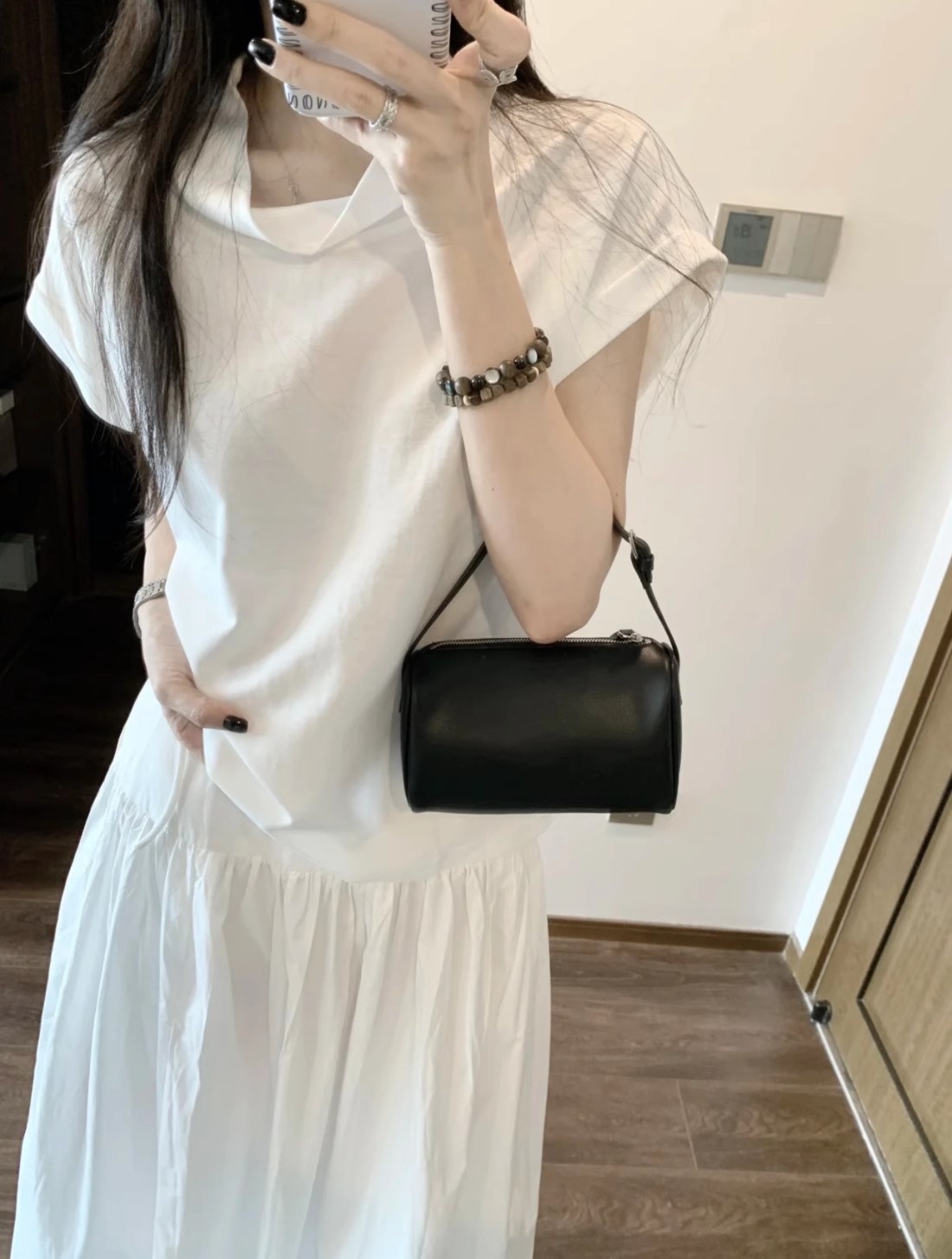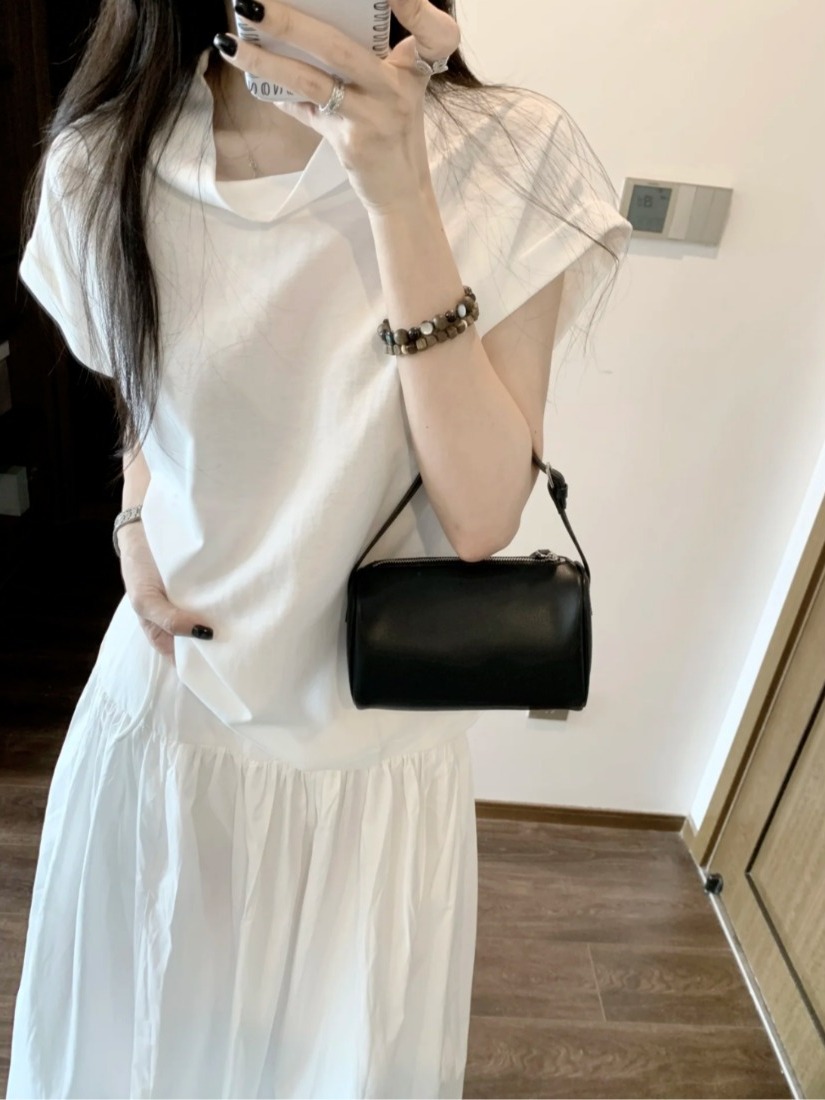 여성을위한 캐주얼 화이트 디자인 슈트 여름 2025 새로운 다목적 스윙 칼라 티셔츠 대형 스커트 투피스 세트