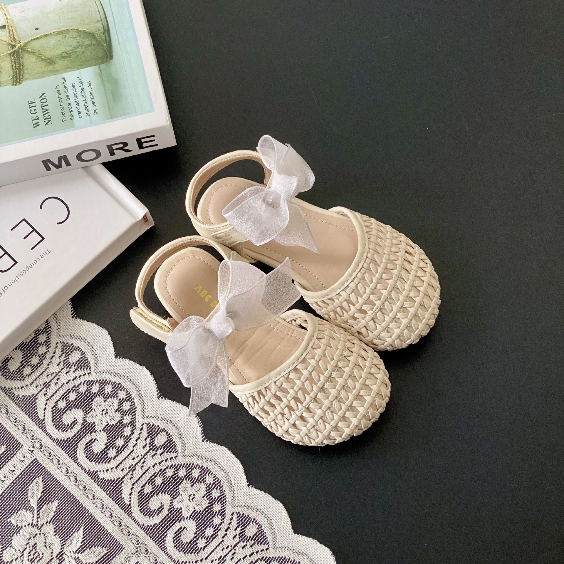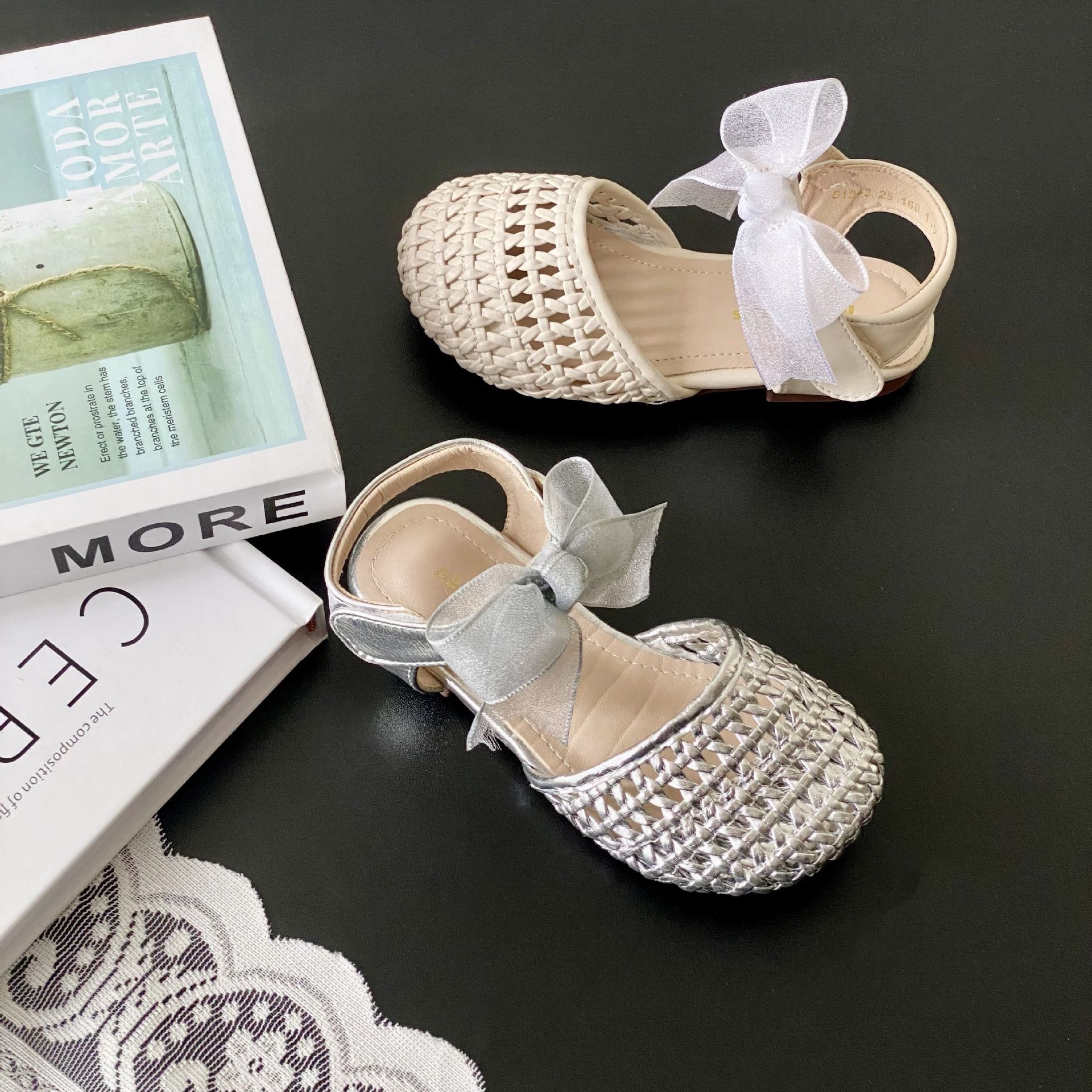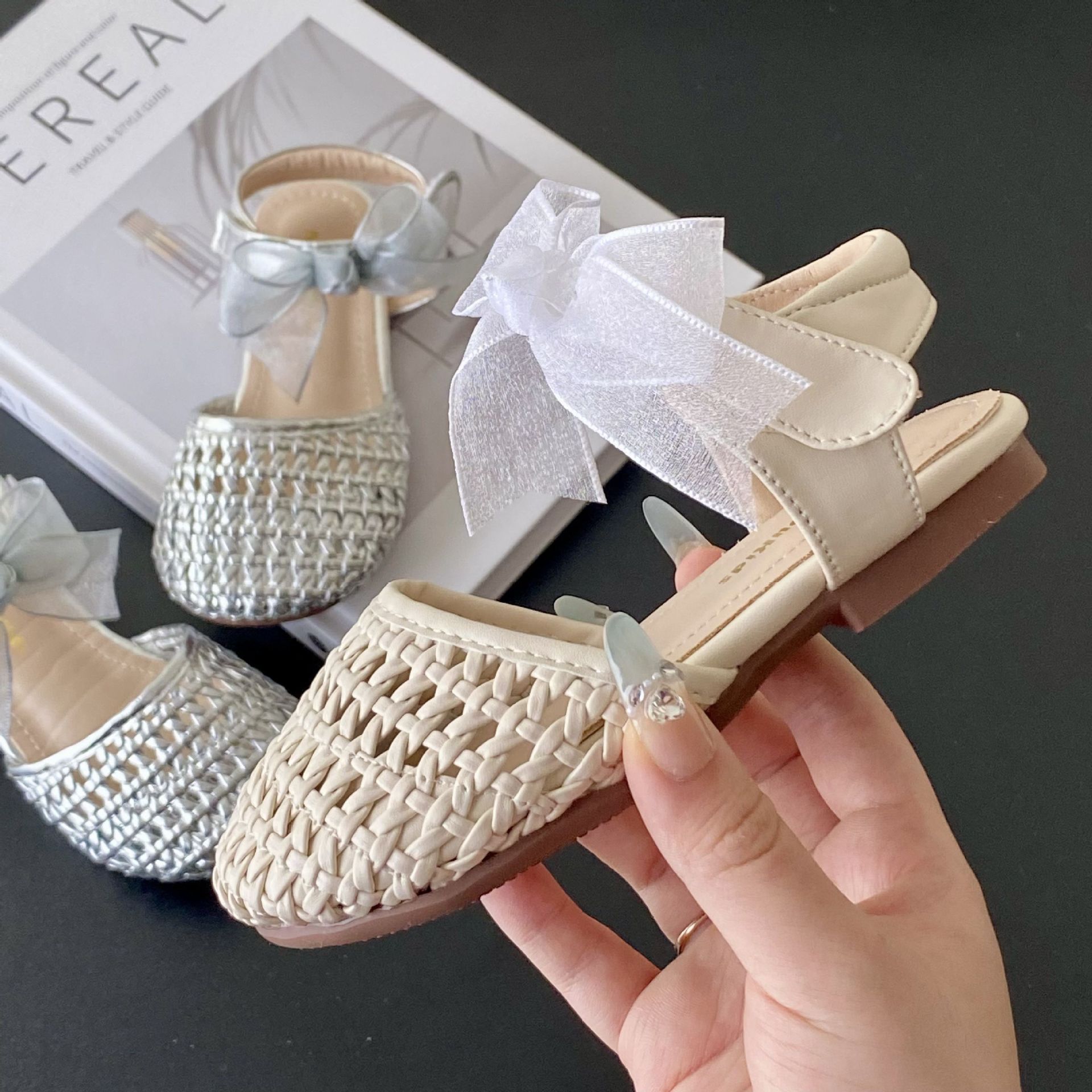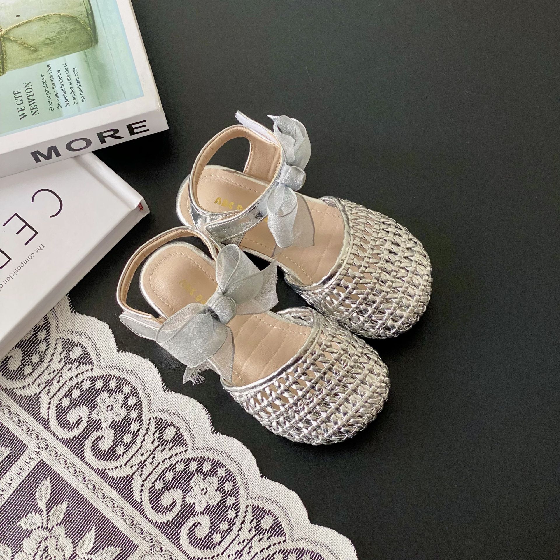 여자 Baotou 샌들 2025 여름 새로운 어린이 활 중공 공주 샌들 짠 아기 해변 신발