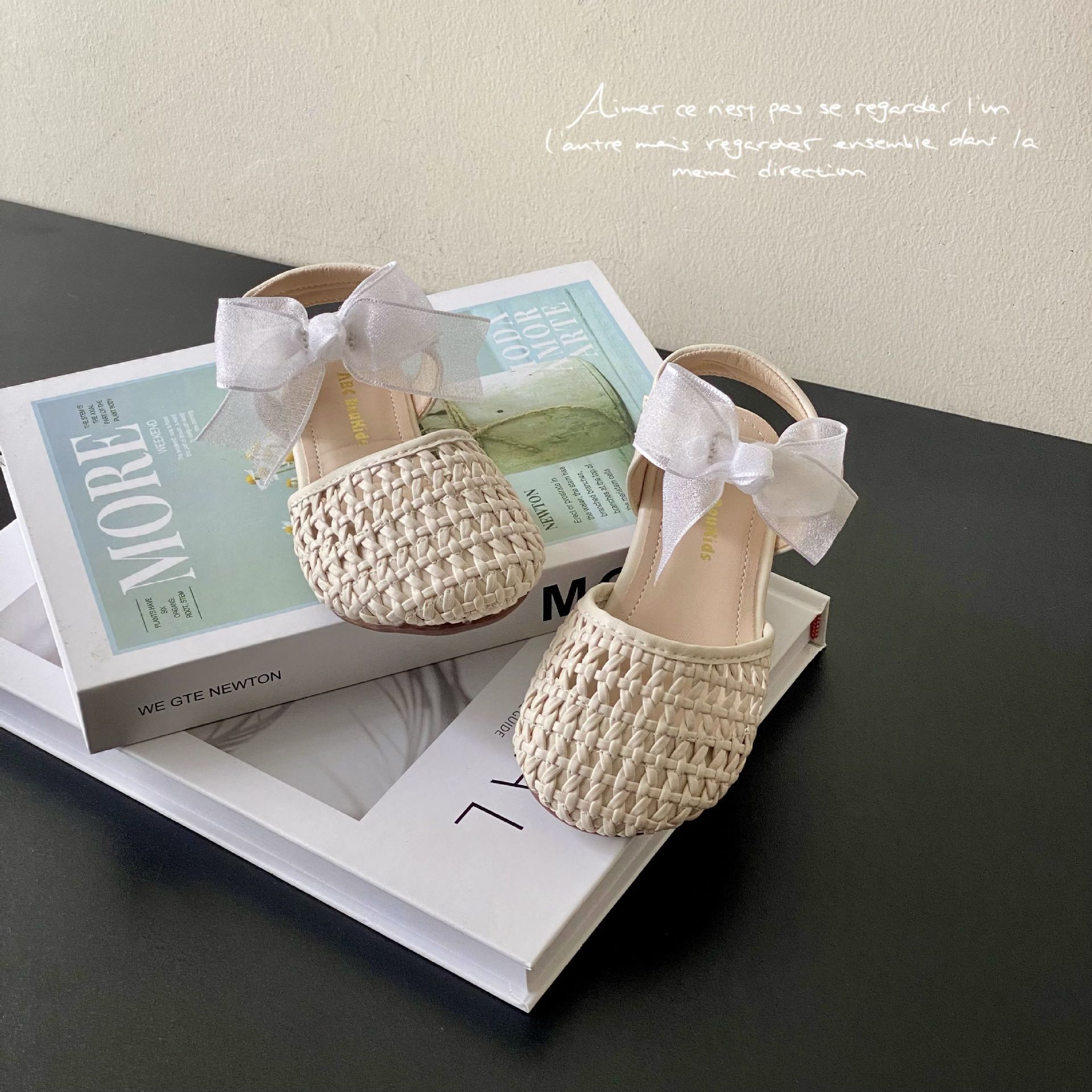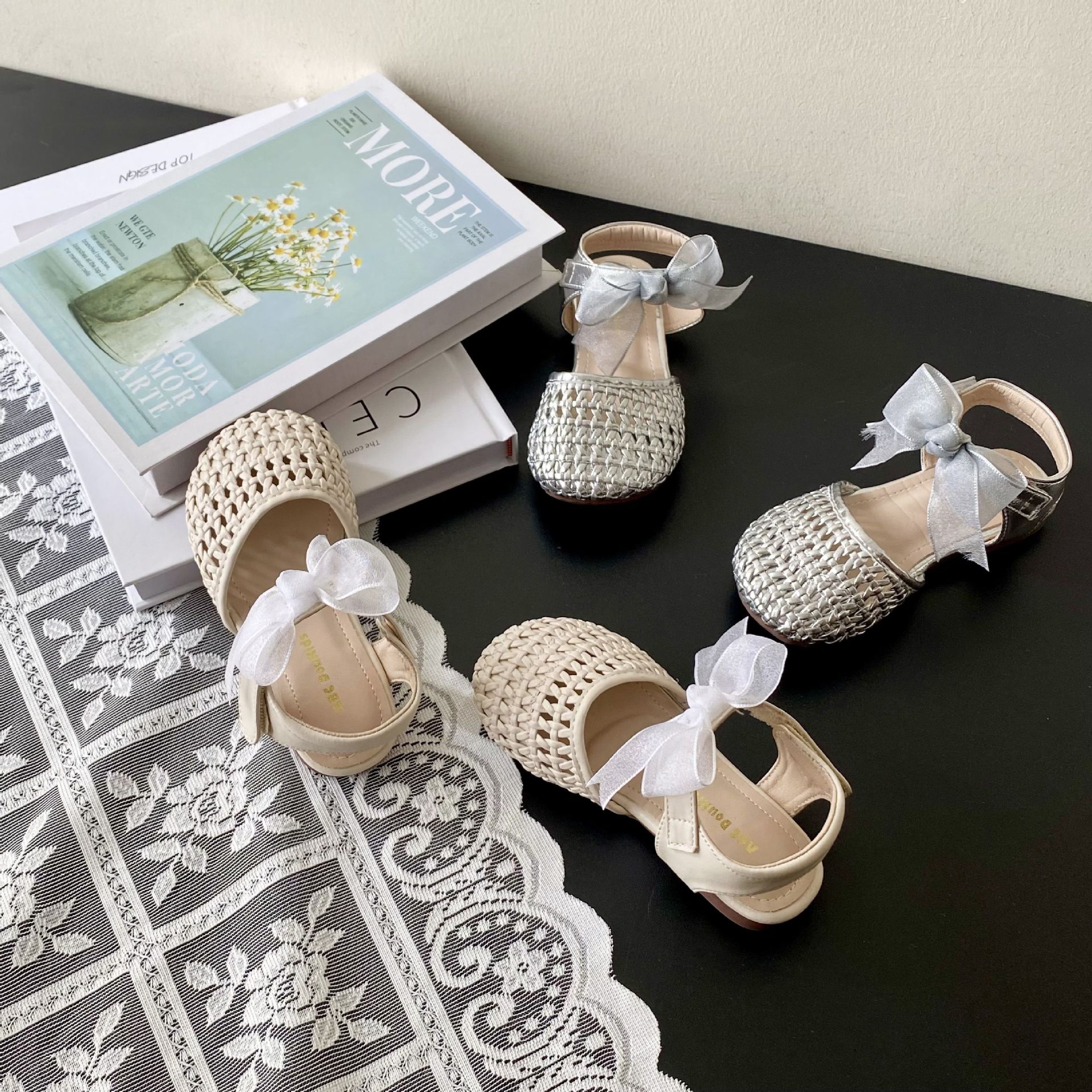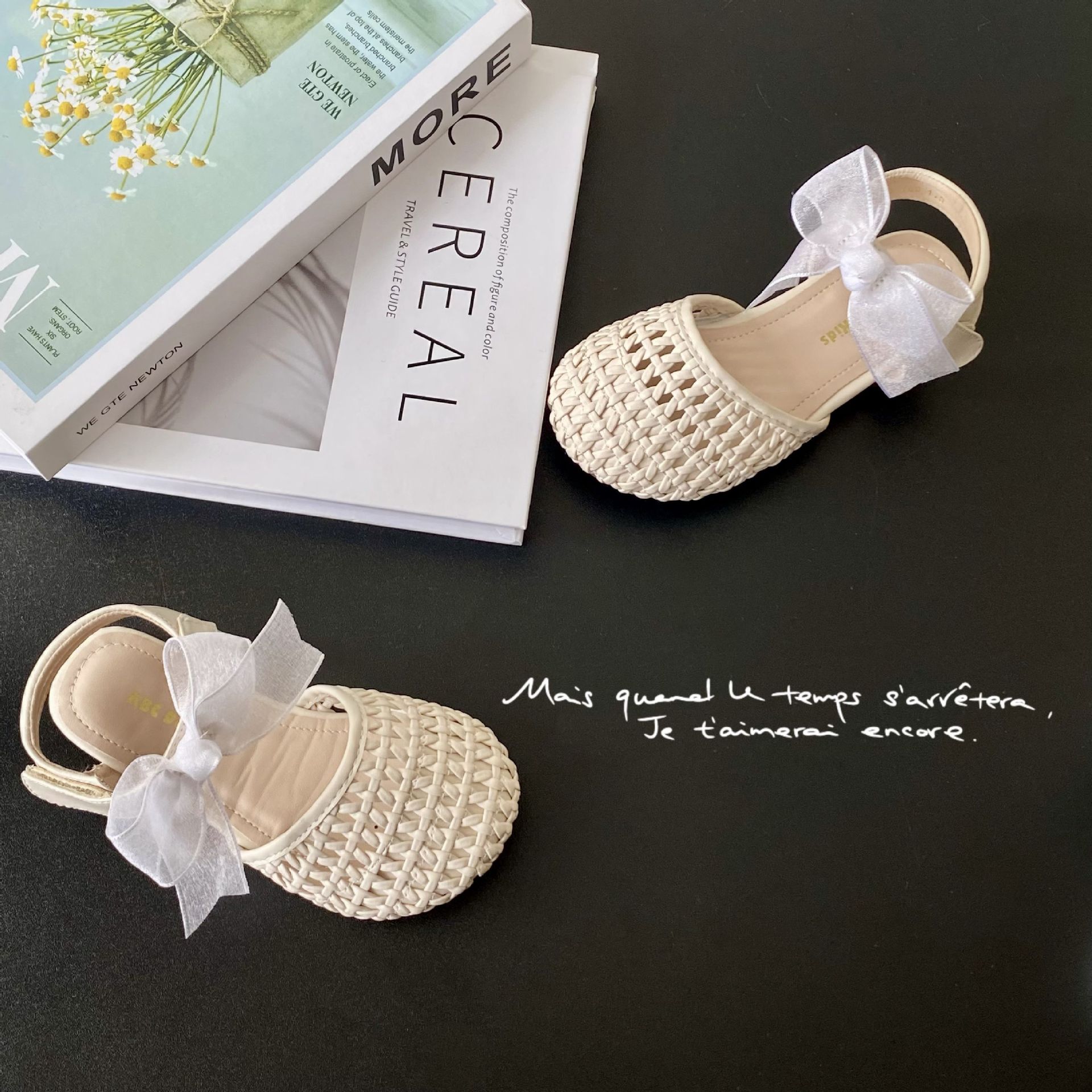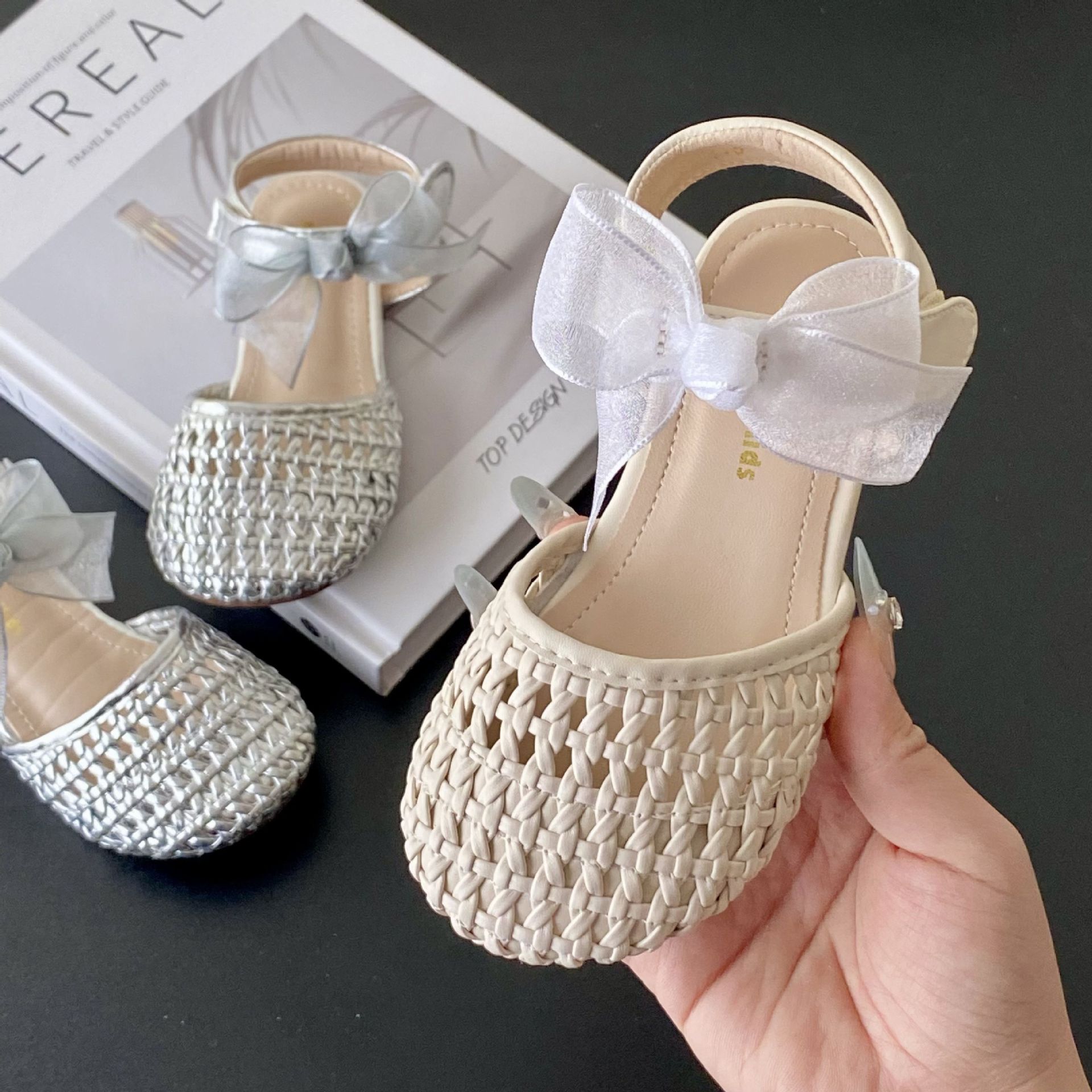 여자 Baotou 샌들 2025 여름 새로운 어린이 활 중공 공주 샌들 짠 아기 해변 신발