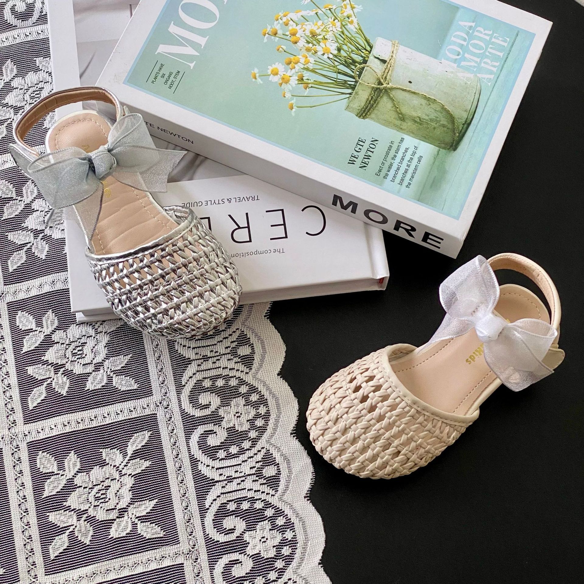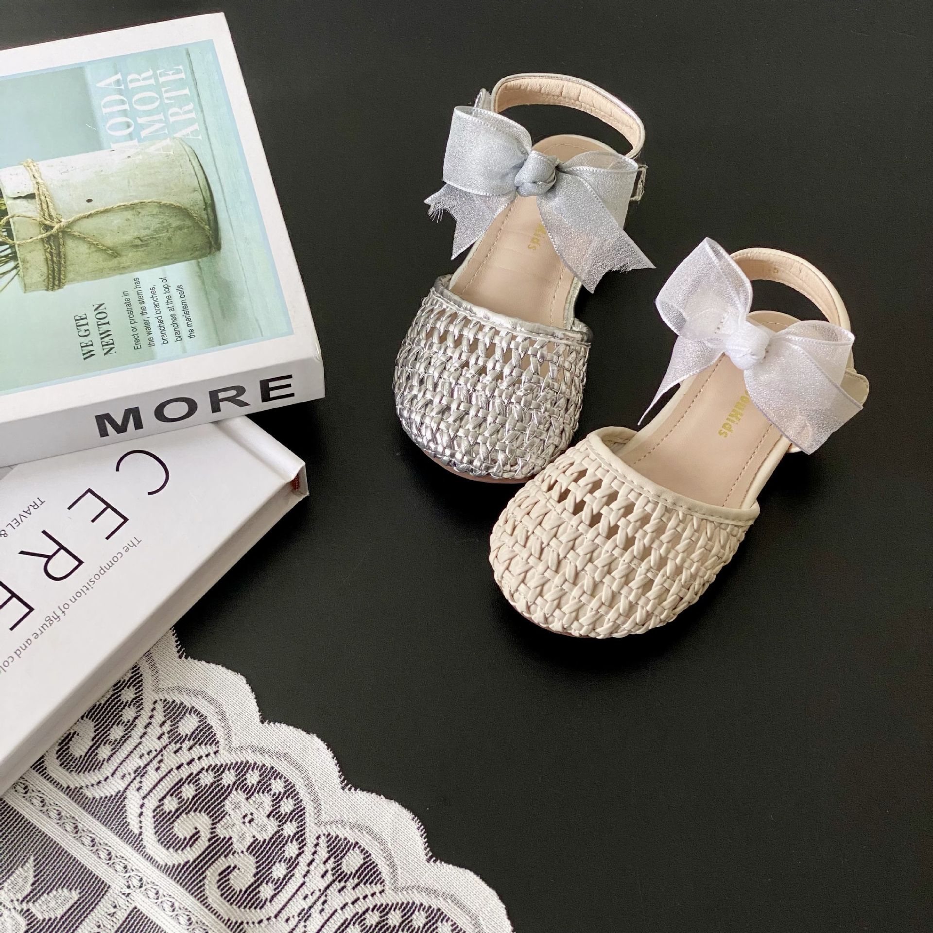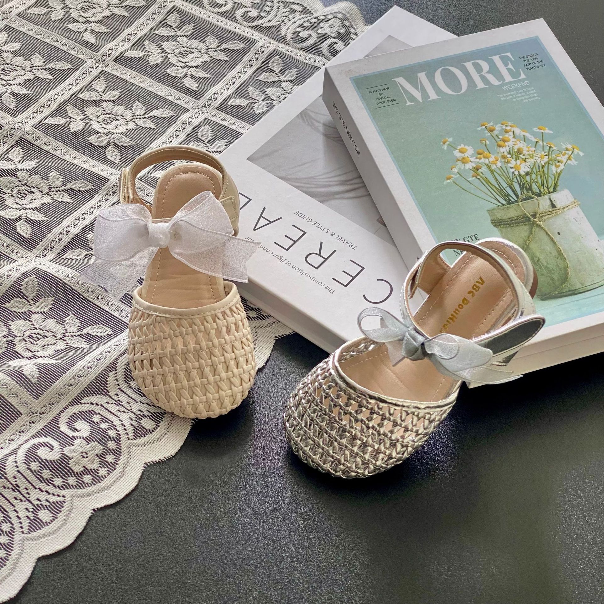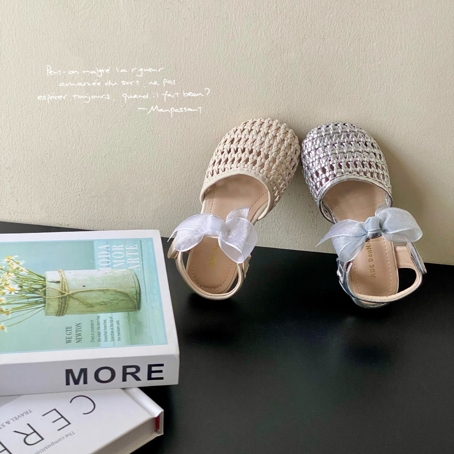 여자 Baotou 샌들 2025 여름 새로운 어린이 활 중공 공주 샌들 짠 아기 해변 신발
