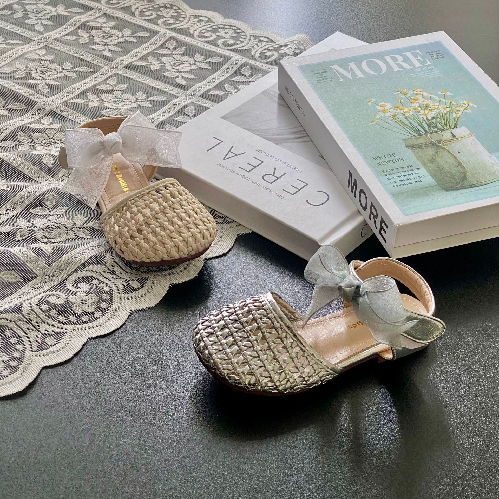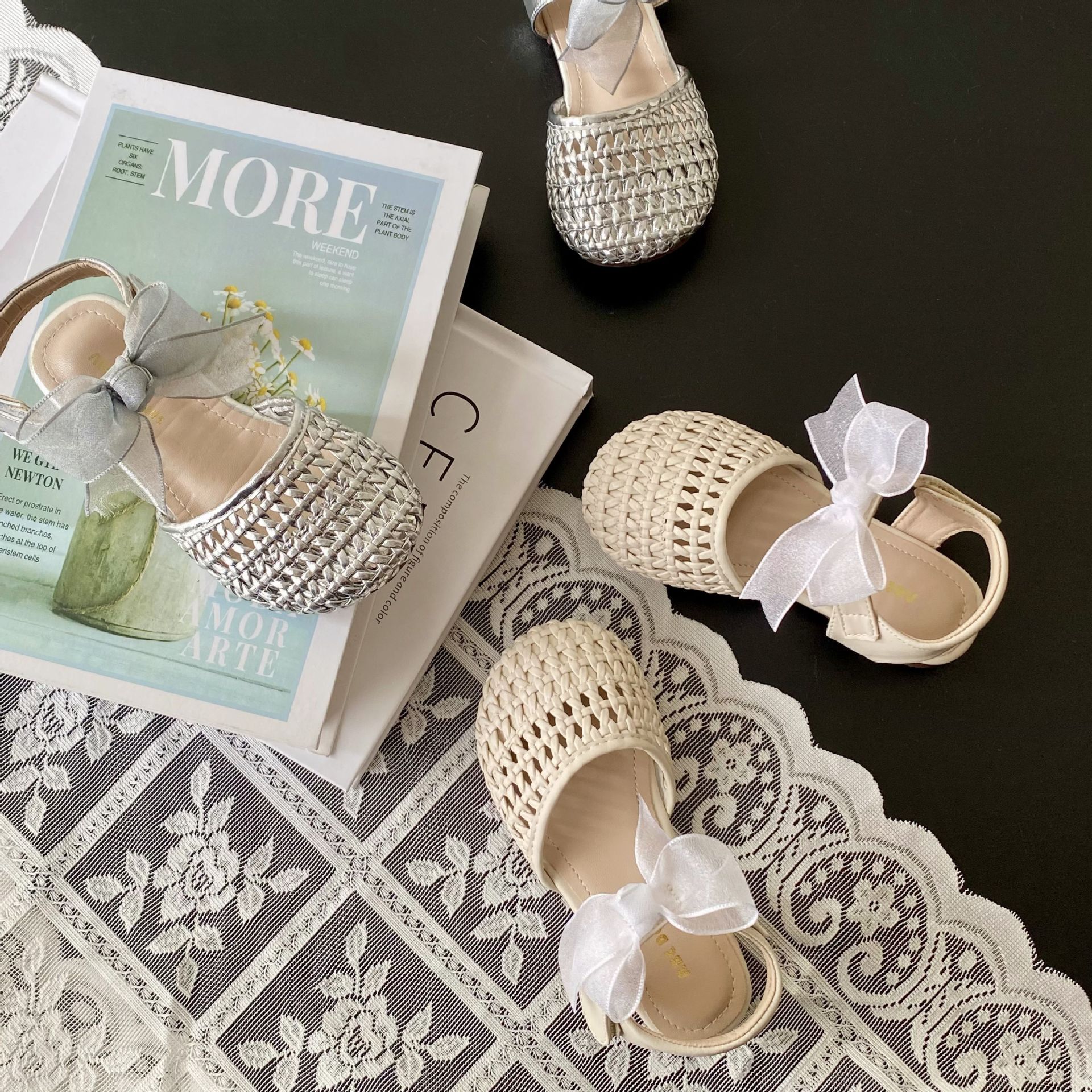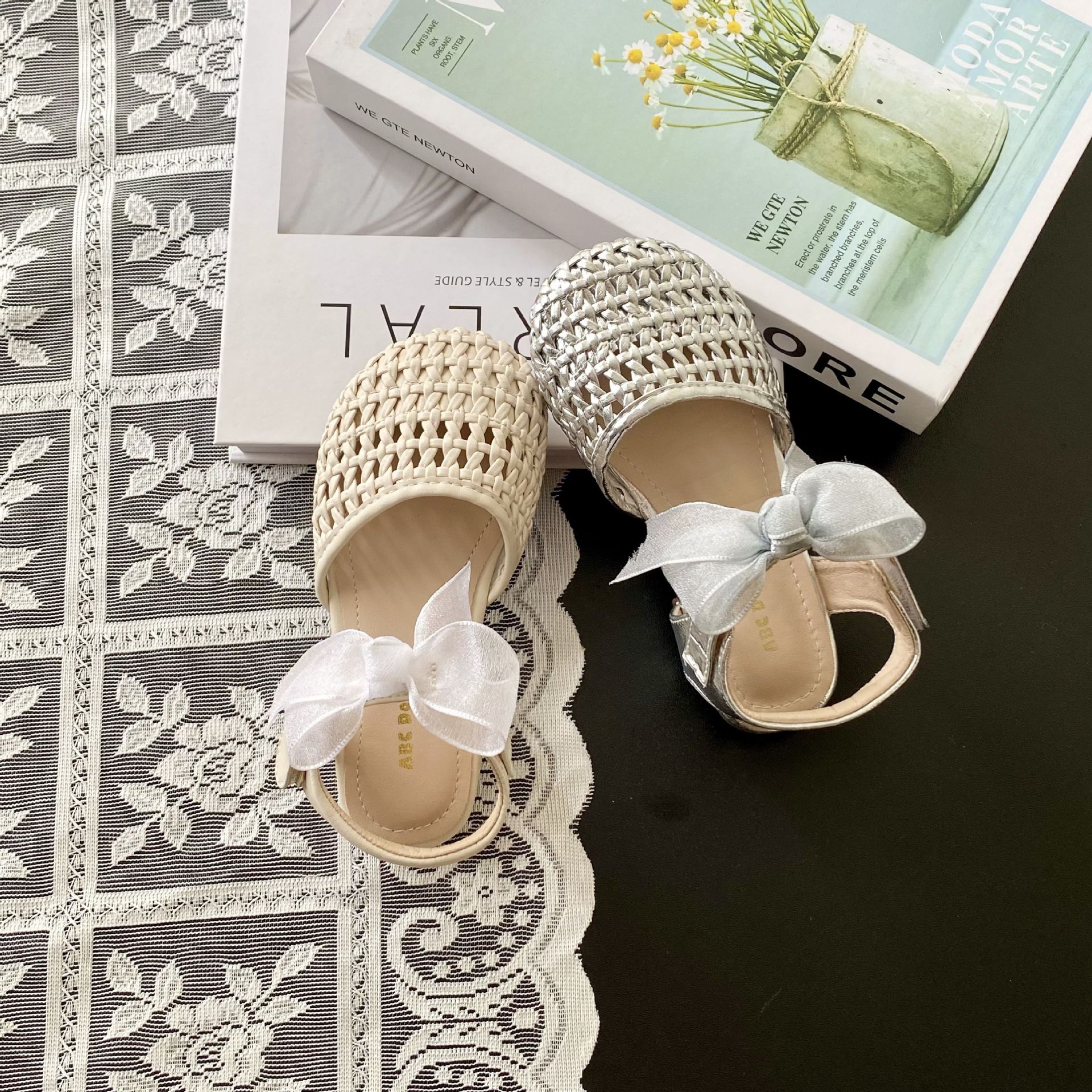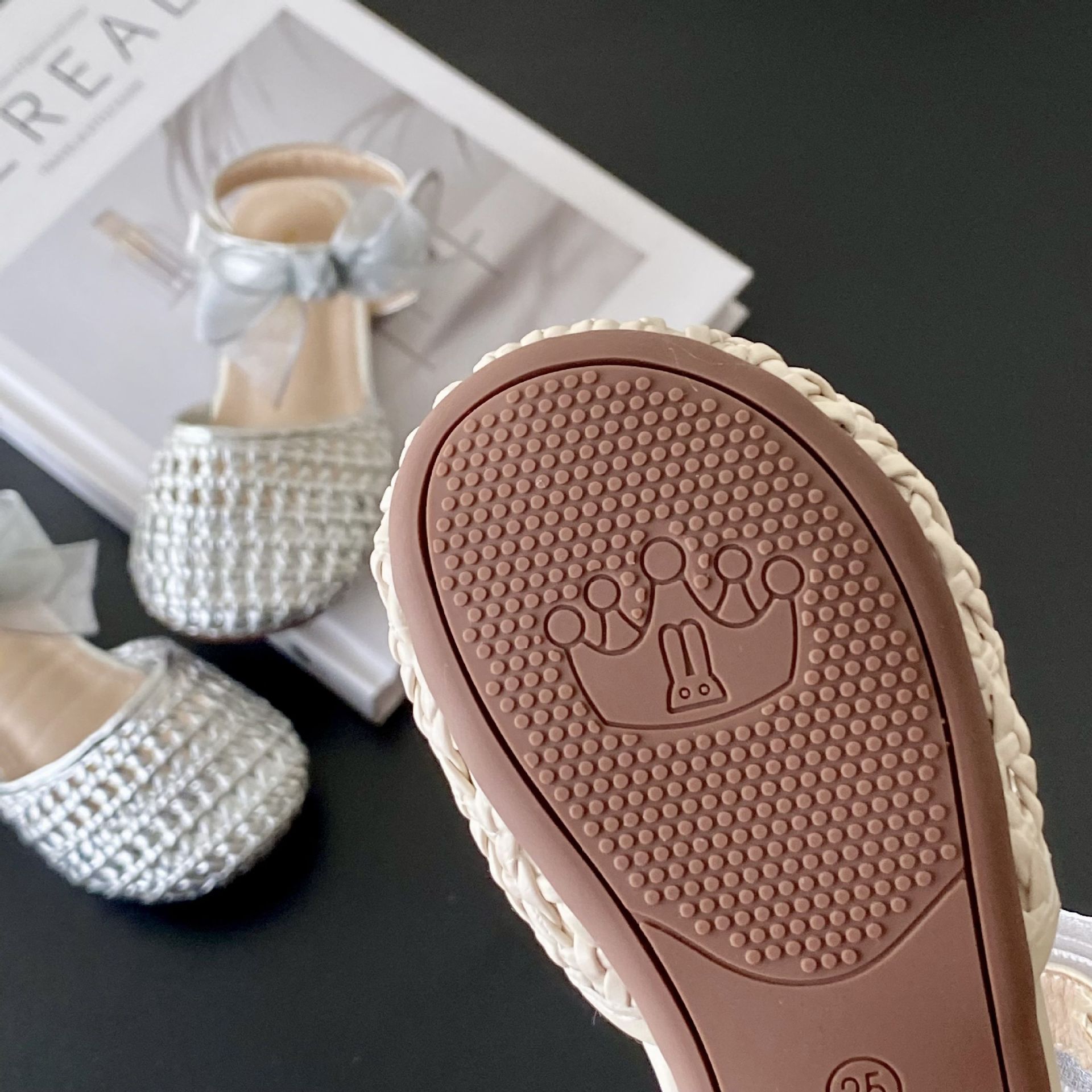 여자 Baotou 샌들 2025 여름 새로운 어린이 활 중공 공주 샌들 짠 아기 해변 신발