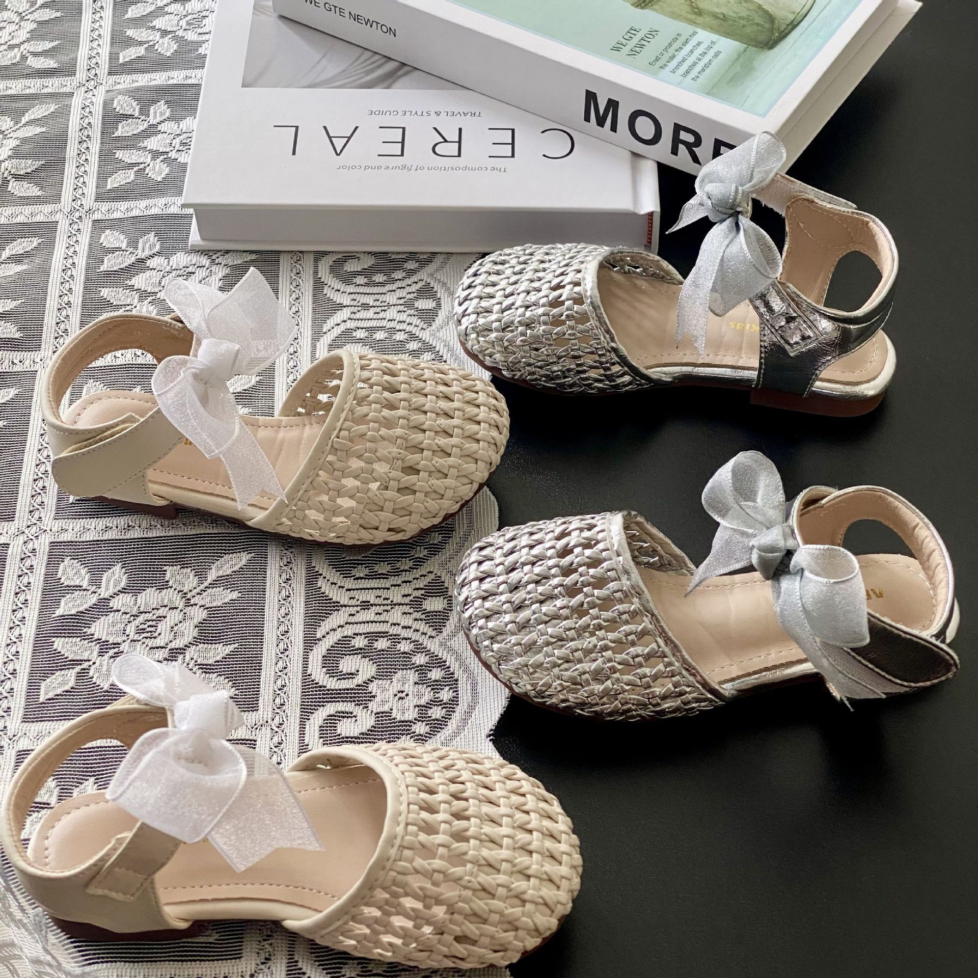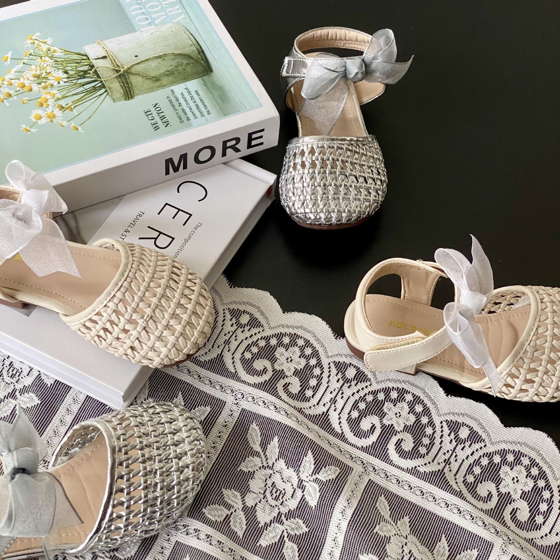 여자 Baotou 샌들 2025 여름 새로운 어린이 활 중공 공주 샌들 짠 아기 해변 신발스토어 가기