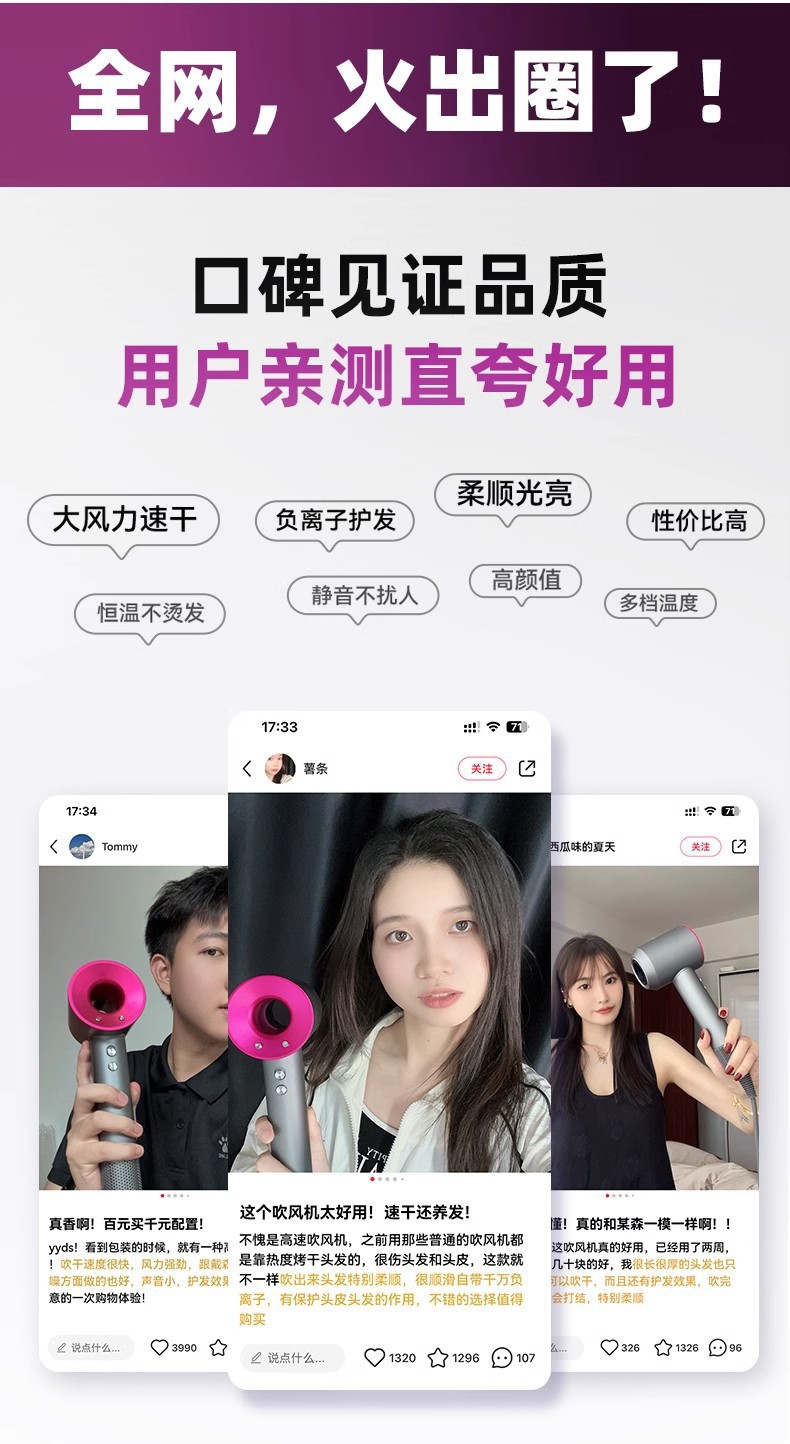 엄선된 Huaqiangbei Mosen의 동일한 스타일의 날개 없는 중공 헤어드라이어 고속 헤어드라이어 가정용 고출력 음이온스토어 가기